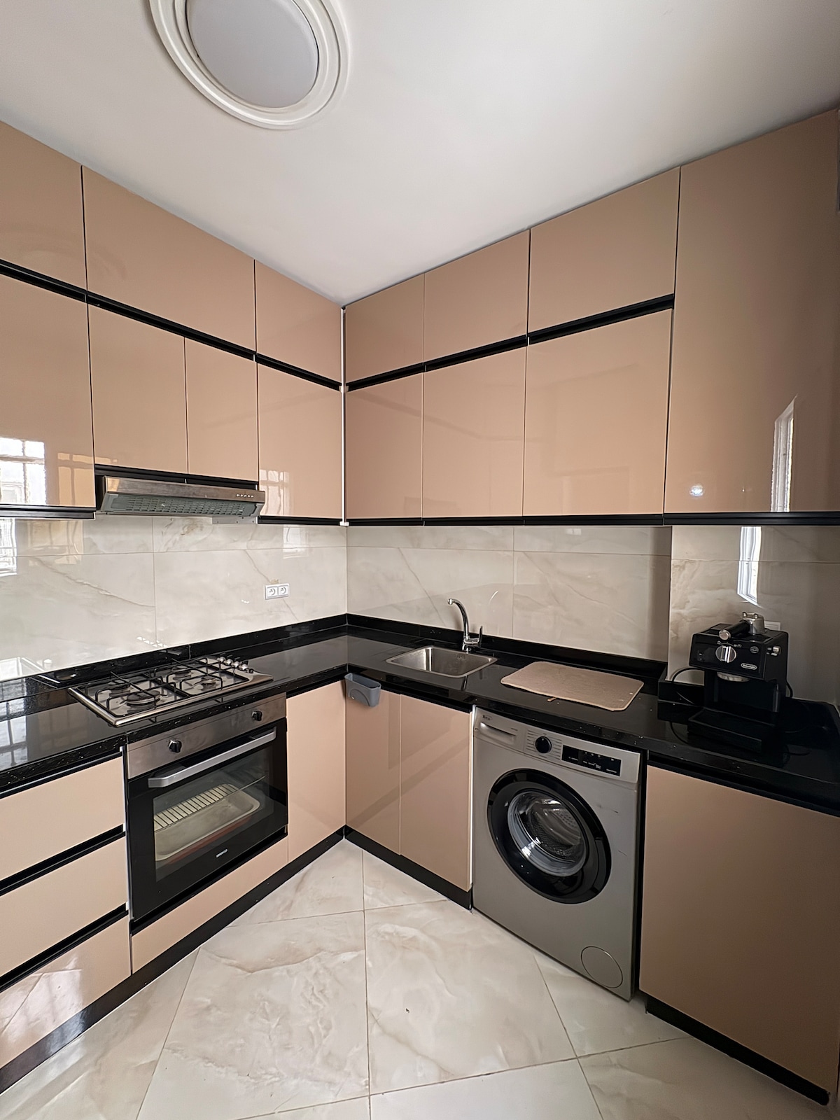 Ласкаво просимо до вашого сучасного нового помешкання з кондиціонером, розташованого менш ніж за 10 хвилин від моря. Насолоджуйтеся тихим житловим районом, де є всі важливі пам 'ятки: супермаркет, продуктовий магазин, аптека, пекарня, місце поклоніння. Знайдіть своє помешкання, повністю обладнане всією необхідною побутовою технікою, постільними речами та послугами столу. Перед вхідними дверима також присвячено автомобільному простору.