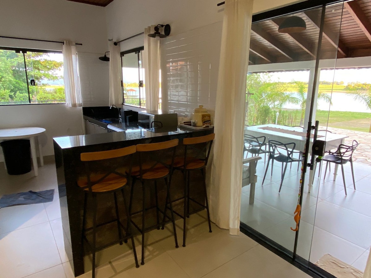 Curta uma experiência neste lugar único aconchegante romântico,com piscina AQUECIDA c hidro coberta com tenda que fecha para total privacidade, cama Queen c massagem, lareira externa caíaque disponível,apenas 200 mt da represa onde é ideal para nadar pescar esportes aquáticos,dentro de um condomínio fechado a 3km do centro da cidade wi-fi ,2 quartos com ar cond central ,sacada ,sala tv smart 50 com streaming cozinha completa, Um lugar para colecionar memórias relaxar ideal para casais ,família.