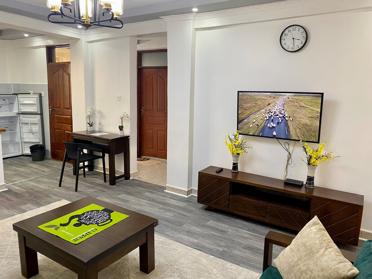 У нашій комфортабельній квартирі з 1 спальнею є все необхідне для подорожі Нанюкі. В апартаментах є вишукана кухня відкритої плани, щедра спальня з якісним матрацом від матраца Dr., високошвидкісний інтернет, розумний телевізор, простора парковка та прекрасний краєвид на гору Кенія на даху. Від торгового центру Cider Mall Nanyuki за кілька хвилин їзди мимо апартаментів Fox Hill, а потім Livia Lane праворуч до Каліфорнійської площі. Ідеальна база для дослідження Нанюкі.