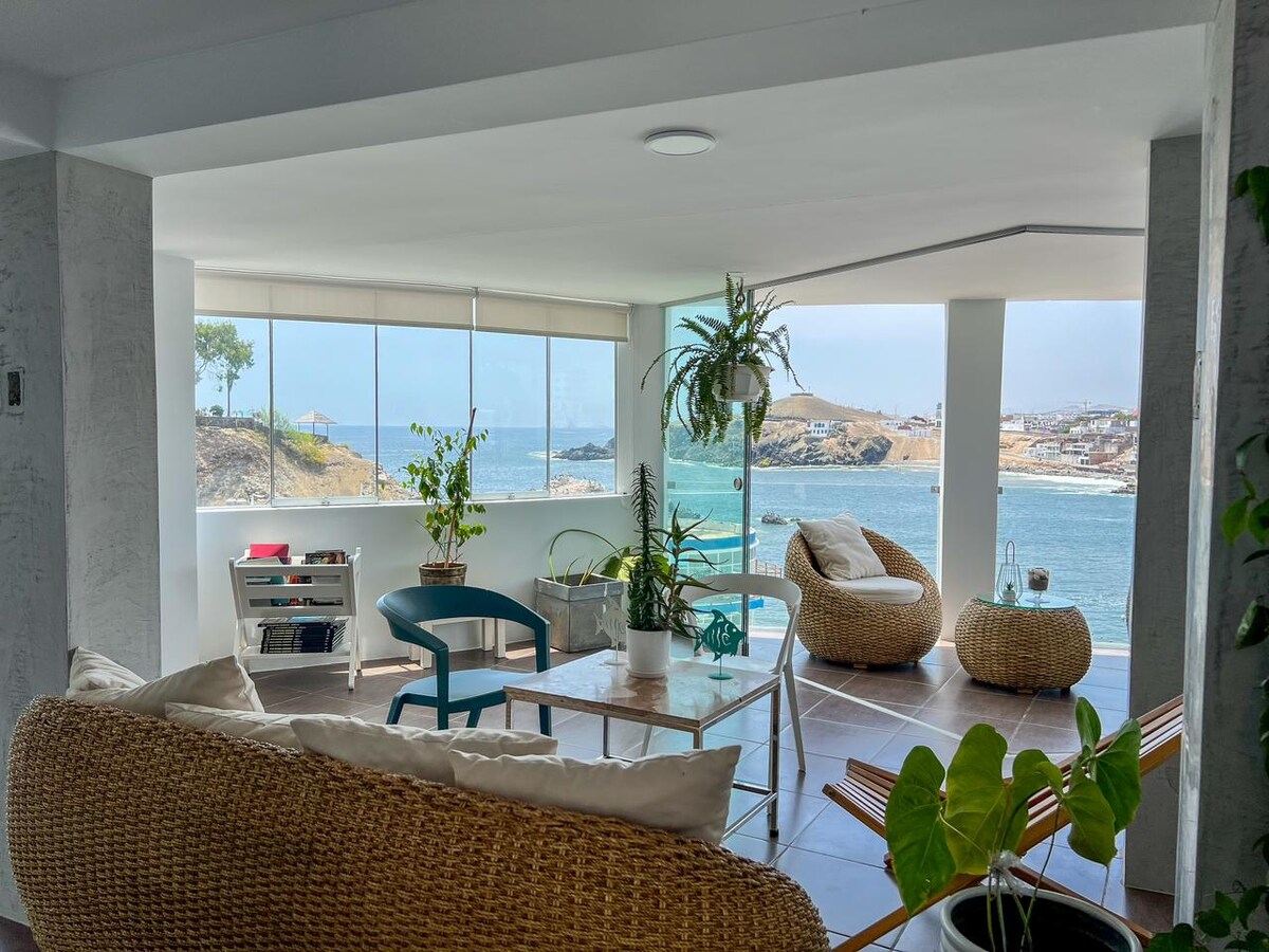 Miniapartamento tipo loft , con vista al mar. Perfecto para pasar unos dias inolvidables en pareja. Cuenta con cama king, mueble cama, tv smart, wifi, cocina a gas, menaje, sala, mini comedor, baño con terma agua caliente, lavadora. Además, podrás aprovechar unas noches fabulosas escuchando el sonido del mar y disfrutando de una hermosa vista. La playa es pequeña, casi privada. La piscina es un area común de la casa, habilitada de 10 am a 6pm. NO BRINDO TOALLAS NI ARTICULOS DE ASEO PERSONAL.