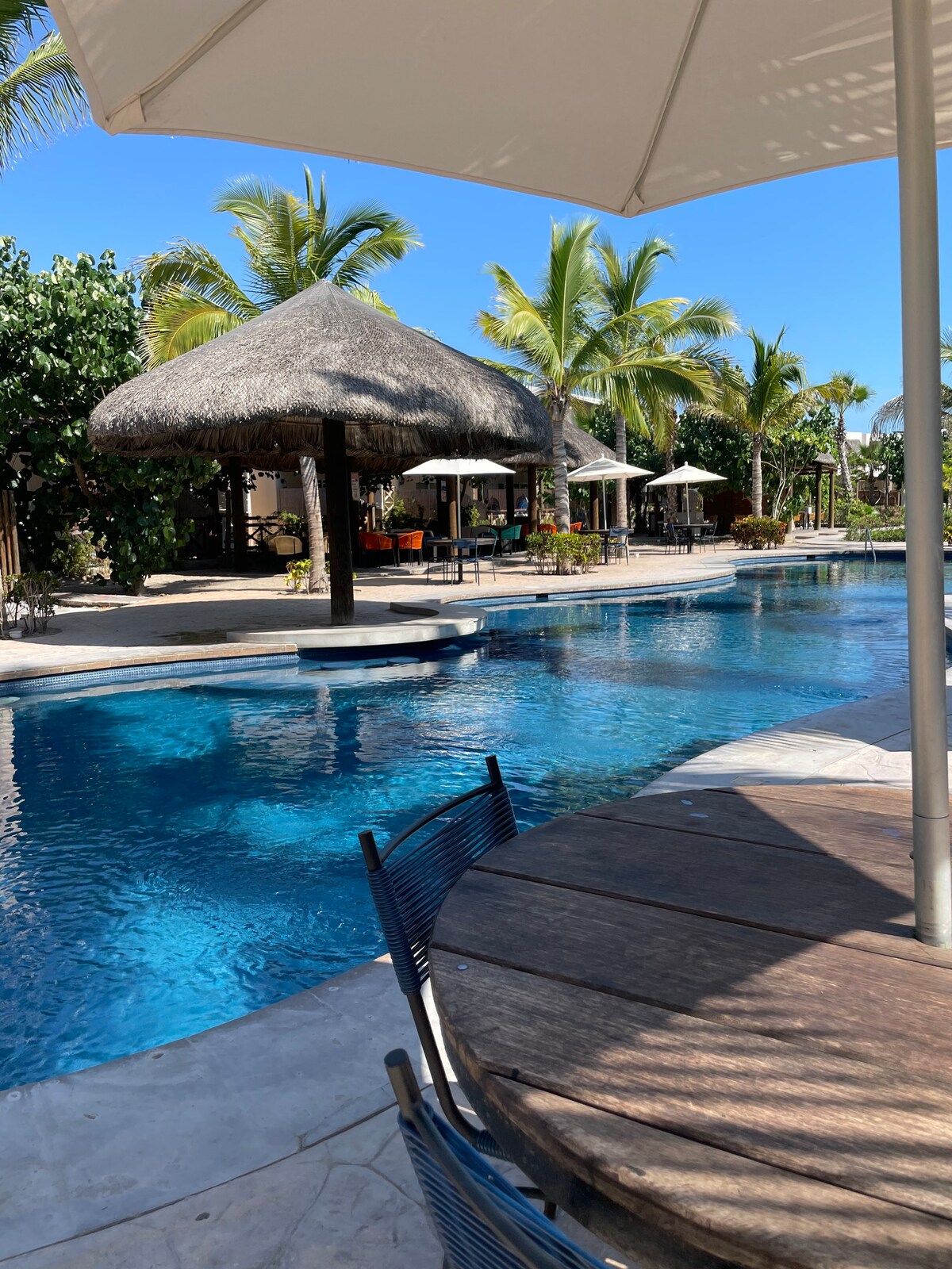 Квартира в 200 метрах від пляжу, 5 хвилин пішки, вам не потрібен візок. Квартира знаходиться на 1-му поверсі і має: - Головна спальня з ліжком queen-size - Друга спальня з двоярусним ліжком -1 ванна кімната та 1/2 - Обладнана кухня. - Спільна та їдальня. - Розумний телевізор у вітальні. - Wi-Fi; - Балкон з видом на басейн. – Тераса з видом на океан Зручності: - Басейн. - Палапи з газовим грилем. - Велосипеди. - Фітнес-зона. - Міні-гольф - Ігри для дітей - волейбольний майданчик; - контрольований доступ;