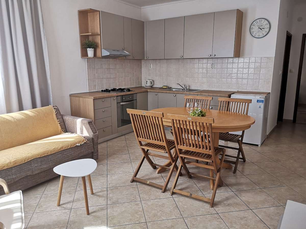 Ця нова відремонтована квартира розташована безпосередньо перед міським пляжем. Старе місто знаходиться всього в 15 хвилинах ходьби. Прекрасний пляж з кафе-баром ідеально підходить для лінивих днів під час відпочинку (перед квартирою ) , ресторан з їжею на грилі та інше ( 3 хвилини ходьби ), продуктовий магазин знаходиться в 100 метрах від квартири, автовокзал і великий ринок ( 10 хвилин ходьби ), зелений ринок і рибний ринок знаходяться на півострові в 15 хвилинах ходьби.