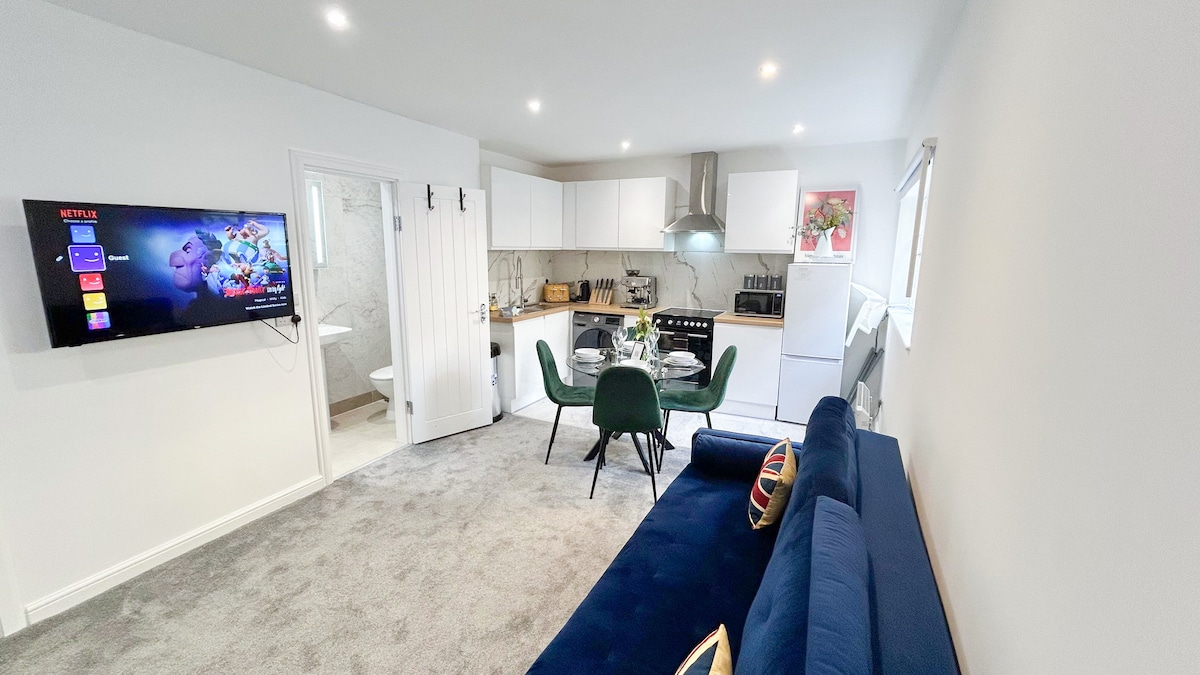 Розслабтеся з книгою в спокійному оазисі. Пориньте в багату історію Спіталфілдса з цієї спокійної гавані площею 37 кв. м з 1 спальнею. Відпочиньте в бразильському гамаку під повнорозмірним фіговим деревом, що є ідеальним місцем для розслаблення, коли місто метушиться за його межами. Насолоджуйтеся лазерним кінопроектором із 100-дюймовим екраном і захоплюючим звуком для потокової передачі улюблених шоу та фільмів. Ця квартира, що працює на 100% відновлюваних джерел енергії, поєднує в собі комфорт, розваги та екологічність в центрі міста.