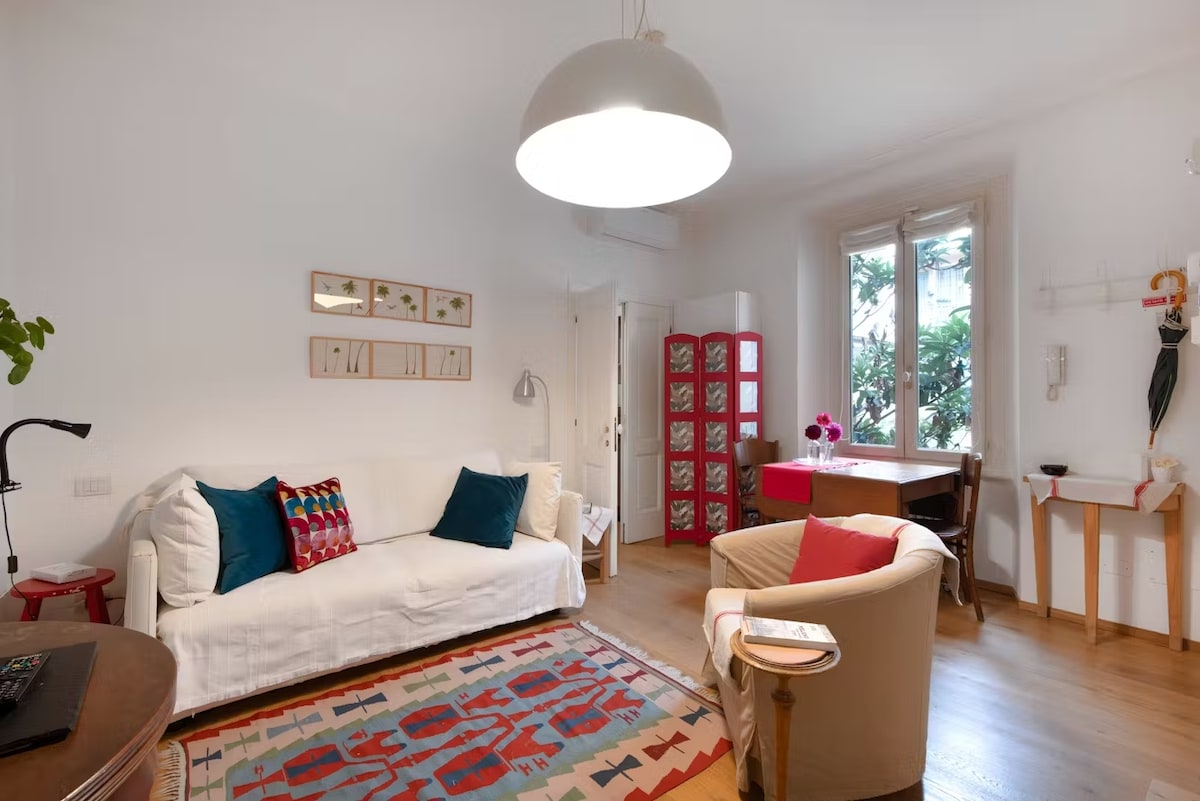 Чарівна квартира в традиційному багатоквартирному будинку Casa di ringhiera в популярному районі Ізола, районі, повному ресторанів, барів, клубів та нового центру нічного життя Мілана. Квартира може похвалитися привабливими старовинними деталями і складається з великої вітальні з міні-кухнею, обіднім столом, зручним диваном-ліжком та смарт-телевізором. Дві ванні кімнати. Спальня з двоспальним ліжком. Яскрава, тиха квартира з вікнами на північ і південь. Чудове розташування для зручного доступу до аеропортів, ярмарків і наймодніших вулиць!