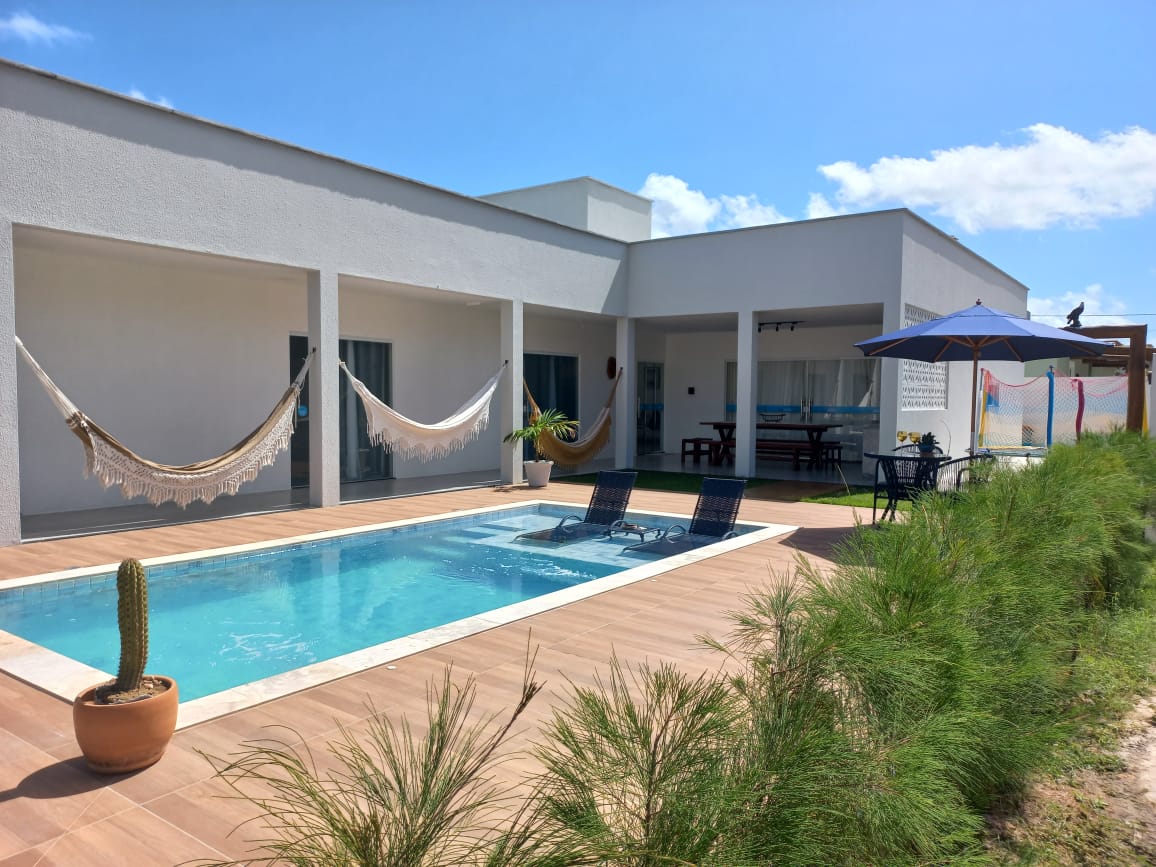 Будинок розташований за 500 м від пляжу Абайс (Estancia/SE). Він містить 3 спальні (1 ванна кімната), а також соціальну ванну кімнату, велику вітальню (дивани, столи, стільці та телевізор), повну кухню (морозильна камера, холодильник, плита, столові прибори, каструлі та сковорідки, посуд та склянки), басейн та барбекю з 2 столами та 12 стільцями на відкритій території. На відкритій території також є 2 гамаки для відпочинку. Паркове місце для 3 невеликих автомобілів. Ми рекомендуємо відвідати Lagoa dos Tambaquis, який розташований в 1 км від будинку.