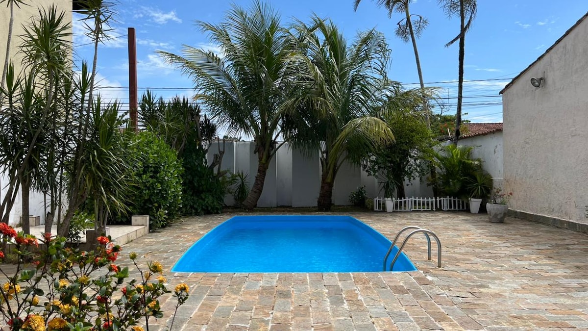 Relaxe com toda a família em um lugar lindo e cheio de paz! Duas suítes Área da piscina com jardim Área para seu churrasco Estacionamento para 2 carros 500 metros da praia