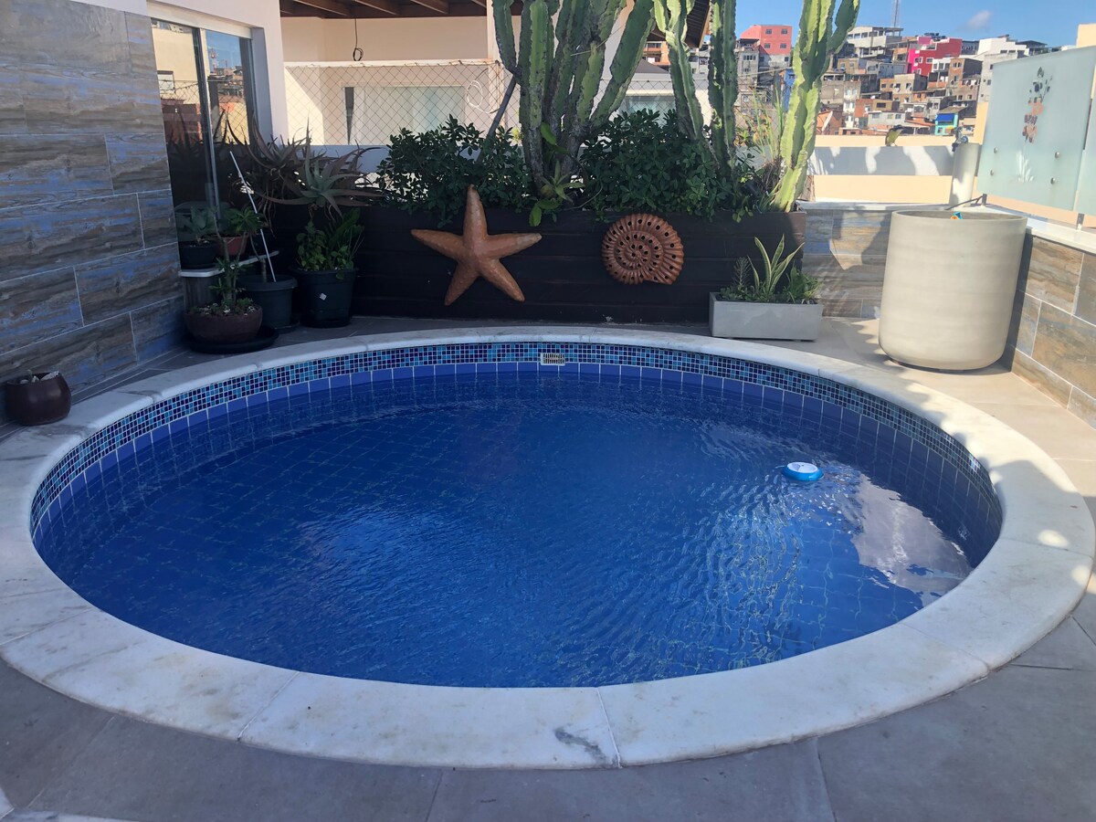 Це наш маленький куточок у Сальвадорі, який ми з любов’ю назвали Малума. Тут усе було створено для того, щоб ви почувалися бажаними гостями, оточеними любов’ю. Нещодавно відремонтоване й оздоблене помешкання, де кожна деталь була ретельно спланована, щоб забезпечити комфорт, практичність і розваги – адже ви щойно прибули в країну радості! Як щодо того, щоб зупинитися в Ріо-Вермелью, недалеко від відзначених нагородами ресторанів, жвавих барів, аптек, супермаркету, пральні та, звичайно, всього за кілька кроків від моря?