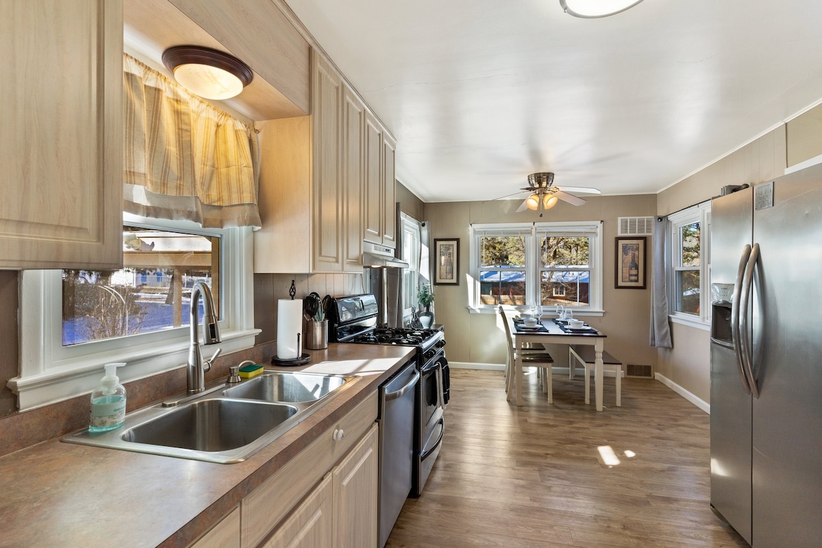 With a river in the backyard next to the private hot tub and massive gas fire pit for all of your party, what more could you need?! If you love watching local wildlife cross over a creek on a luxurious back patio that’s perfect for all seasons, then you should book here. Enjoy the full amenities of a kitchen stocked with a curator’s touch, heated towel rack, remote control gas fireplace, gas grill, 2023 top-to-bottom remodel. Book RiverHouse North, by Forest & Peak Retreats, today!