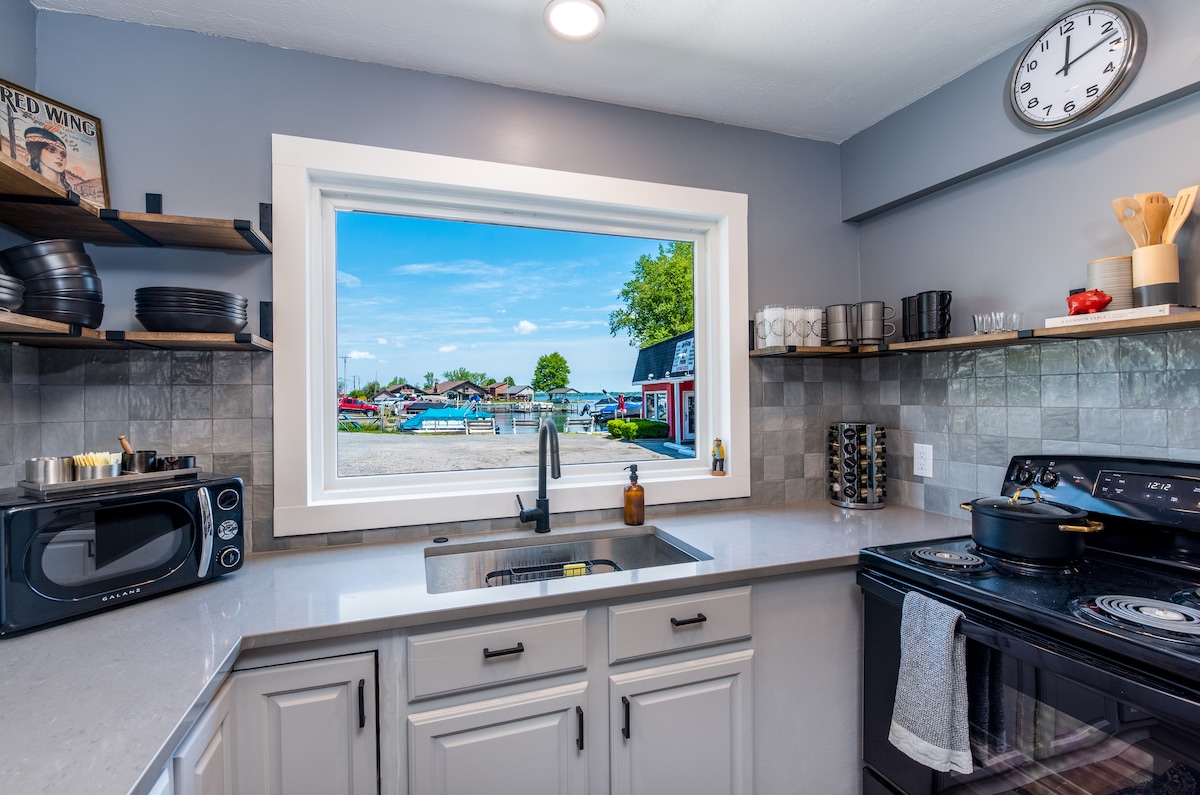 Welcome to The Pointe House! Brand new remodeled home located in the heart of Russell's Point w/ fabulous lake views and boat dock for guests to use. Cozy is an understatement! Walk next door to Jack n Dos pizza & ice cream shop! Stunning remodel, original decor. 3 BRs, 2 FULL BATHS! Comfortably sleeps 6! Quartz Counters, Recessed Lighting, Electric Fireplace. Amenities include 4K HD TV w ROKU. WI-FI, Keurig Coffee Maker w/ Complimentary K-Cups, Microwave, Fridge, Range, Fully Furnished Kitchen.