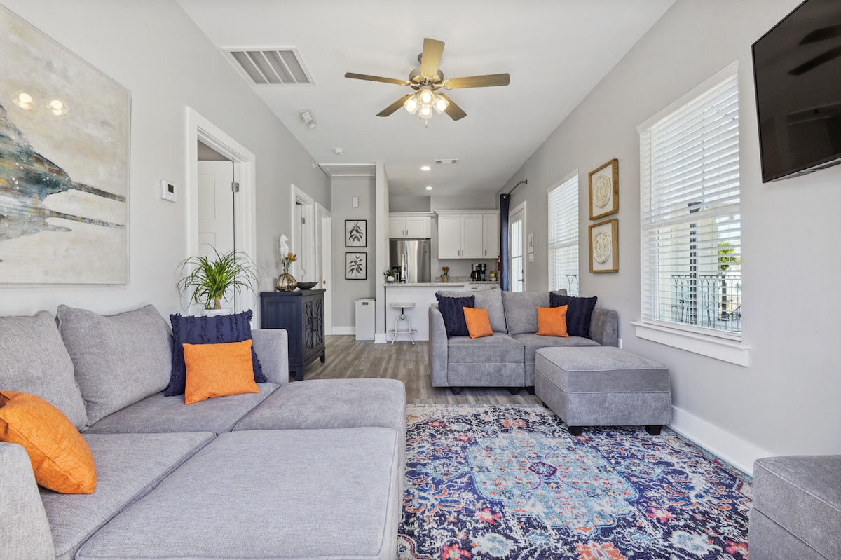 Насолоджуйтеся комфортабельним кондомініумом з двома спальнями, де можна перебувати з домашніми тваринами, в центрі Оушен-Спрінгс. Прогулюйтеся або проїдьтеся на гольф-карі до пляжу, місцевих магазинів і ресторанів. Це продумано оформлене помешкання ідеально підходить для пар, сімей або тривалого перебування. Воно має сучасний декор, повністю обладнану кухню, швидкий Wi-Fi і все необхідне для відпочинку та зручного перебування на узбережжі.