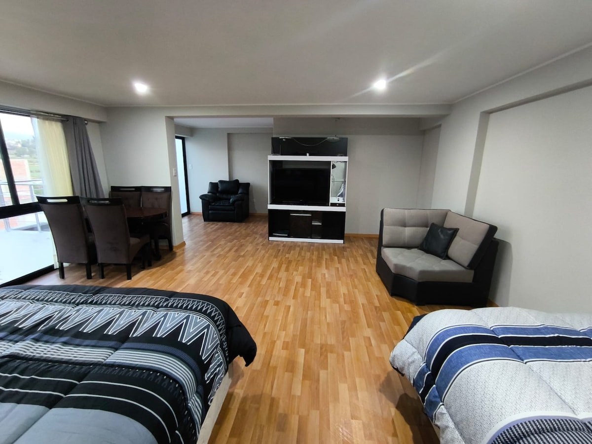 Це унікальне помешкання пропонує достатньо місця для вас і ваших близьких. У ньому є 3 спальні (1-а спальня з двоспальним ліжком розміру King size / 2-а спальня з 1 односпальним та 1 двоспальним ліжком / 3-я спальня з двоспальним ліжком) і вміщує до 8 осіб. Це безпечний район, недалеко від магазинів, банків, супермаркету та транспорту. Вона розташована на третьому поверсі без паркінгу. (Тільки багажні ліфти). 3,5 км (15 хвилин) на автомобілі від Пласа-де-Армас. 1,5 км (7 хв) від конференц-центру Cerro Juli