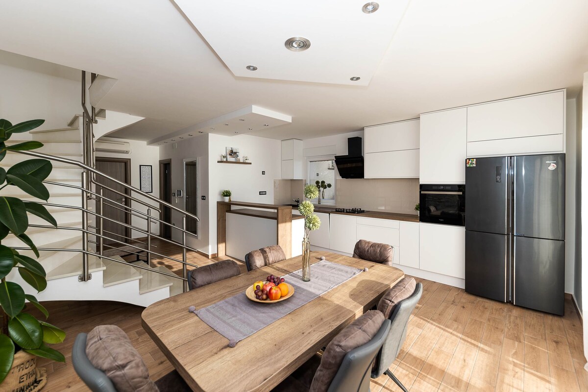 Це унікальне помешкання має сучасний і позачасовий стиль. Дуже простора і світла квартира-лофт з унікальним видом на море. Сучасний і вишуканий - ідеально підходить для спокійного та спокійного відпочинку. На заході сонця насолоджуйтеся вином на балконі або готуйте сніданок на великій кухні. Насолоджуватися та відновлюватися - це девіз. І трохи розкоші - обов 'язкова умова.