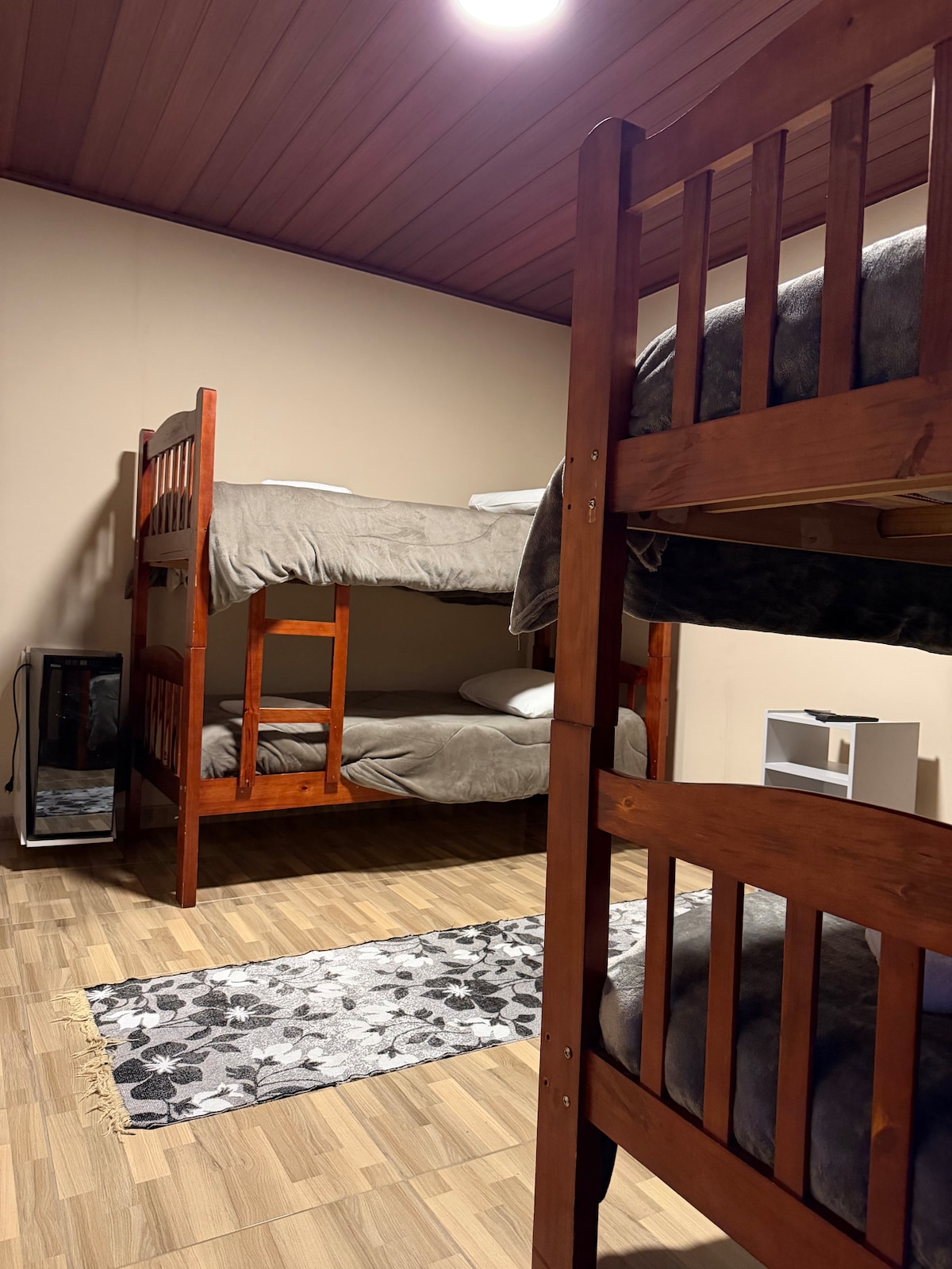 O quarto possui ótimas comodidades como: TV LCD 32 polegadas Full HD com canais por assinatura, cama de casal King Size, frigobar, Wi-Fi de boa qualidade, som ambiente, ducha com aquecimento central da água, aquecimento por calefação para os dias mais frios.