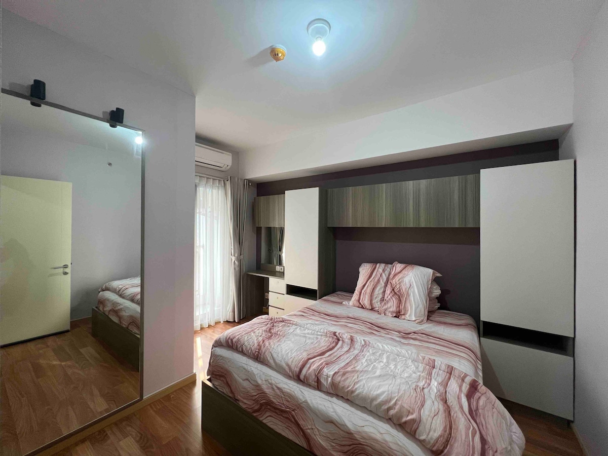 Relax and enjoy comfort of a home sweet home. Fully furnished 1 bedroom apartment that provides all the guest needs away from home. Located in strategic location in CBD Bintaro Jaya and comes with complete condominium facilities, within walking distance to Malls, Hospitals, Restaurants and many more. We provides free Wi-Fi and complete amenities such as refrigerator, kitchen and dining utensils plus water dispenser to make your stay feels like home sweet home.
