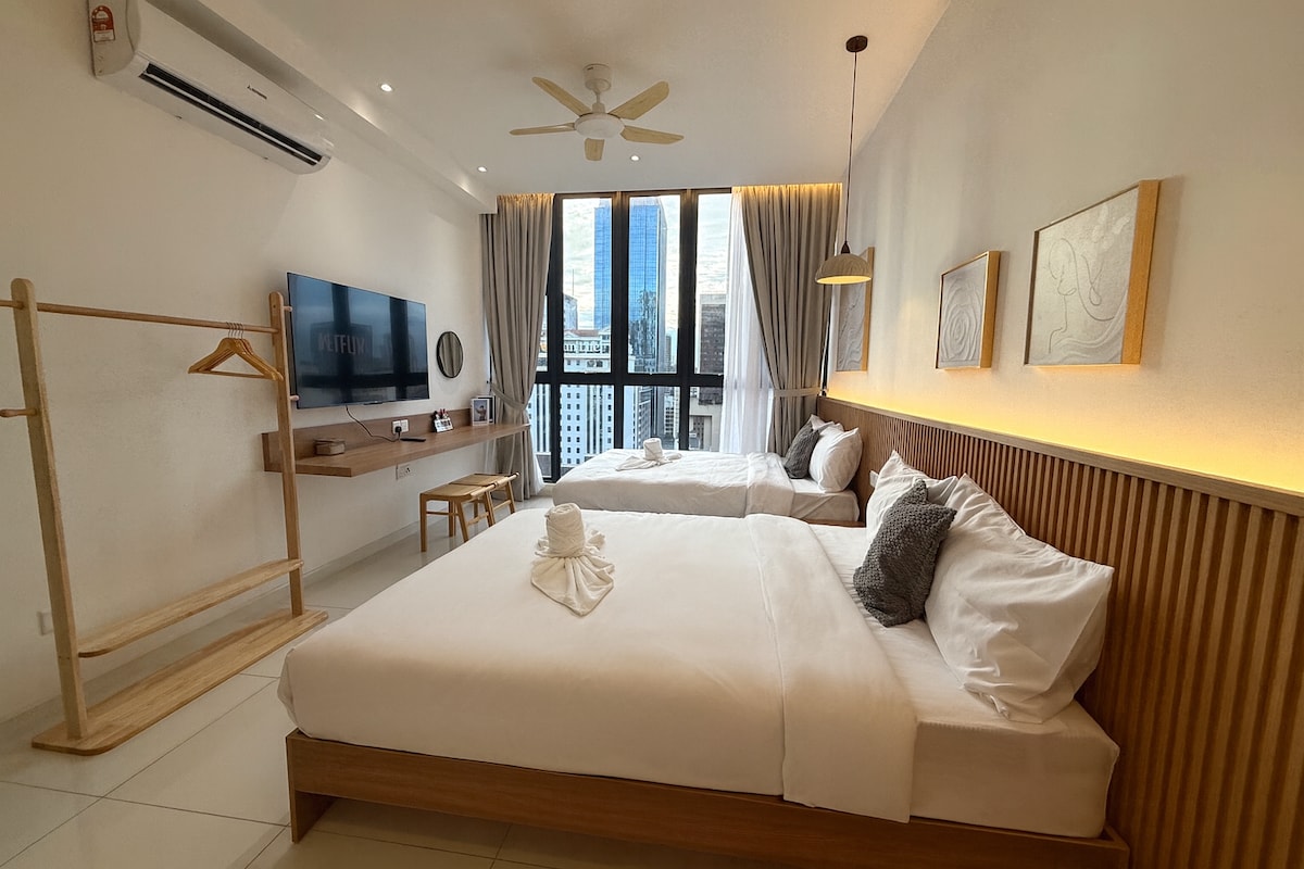 Поруч із серцем Куала-Лумпура та величною вежею-близнюком KLCC Petronas, торговим раєм Букіт Бінтанг та місцями харчування та розваг у Золотому трикутнику. Ми пропонуємо душ із гарячою водою, кондиціонер та добре мебльовану чисту кімнату. Панорамний басейн з приголомшливим видом на вежу KLCC і KL Tower і панорамний вид на Куала-Лумпур. З міркувань безпеки перед прибуттям усі зони кімнати попередньо дезінфікуються.