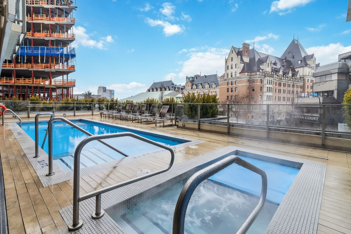 Це помешкання призначене для бронювання готелю Victoria Waterfalls. Насолоджуйтеся приголомшливими видами на Внутрішню гавань із цього сучасного та просторого кутового люкса на 15-му поверсі в центрі Вікторії з БЕЗКОШТОВНОЮ безпечною парковкою. Усього за кілька кроків від культового готелю Empress, будівель Inner Harbour і Парламенту. Люкс може похвалитися кухнею від шеф-кухаря, вікнами від підлоги до стелі, вітальнею та їдальнею відкритого планування та просторою спальнею з великим двоспальним ліжком і суміжною кімнатою. Відпочиньте на балконі навколо будинку або насолоджуйтеся зручностями будівлі, такими як тренажерний зал, басейн і гідромасажна ванна.