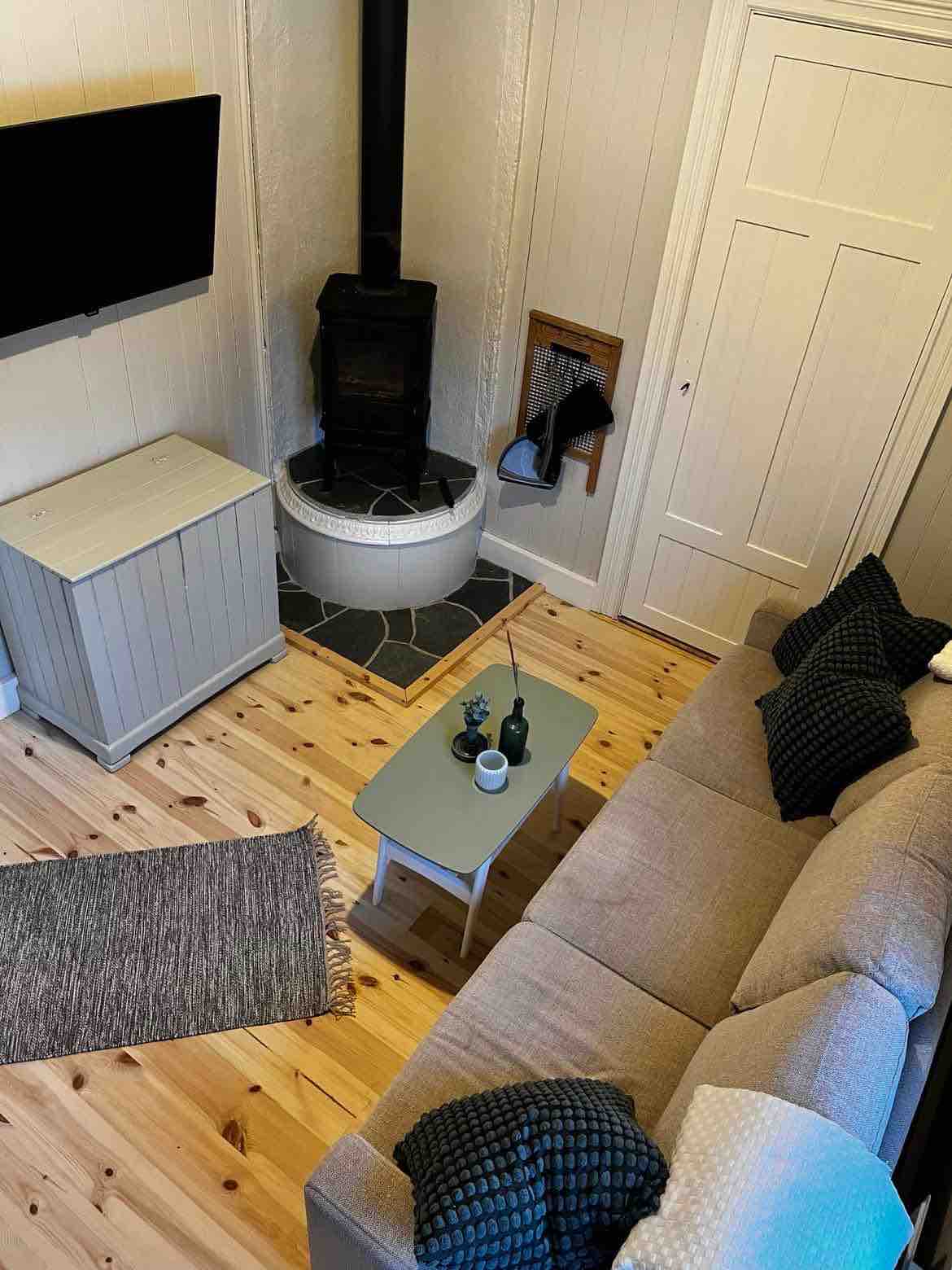 Відпочиньте в цьому унікальному й спокійному помешканні. Перемістіться в стару шкільну їдальню, де учні церкви їли шкільний обід протягом дня в 40-х і 50-х роках. Дров’яна піч, яка тріщить на кухні, – це та сама піч, на якій мати готувала обід. Вона жила нагорі, і ми пропонуємо їй кухню з сусідньою спальнею та ванною кімнатою. Тихо і спокійно в старій дерев'яній будівлі. Зовні ви можете насолоджуватися видом на гори або відвідати прекрасну церкву Фресена, яка знаходиться поруч із будинком вікарія, де пара господарів живе зі своїми собаками та котами.