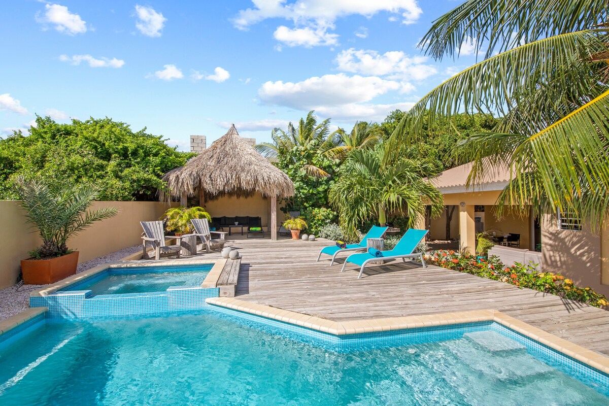 Geniet van een heerlijke vakantie in onze ruime villa op Curaçao. De villa beschikt over een eigen zwembad met geïntegreerd jacuzzi-/spa-zitgedeelte, tropische tuin, 4 slaapkamers met airco en diverse fijne zitplekken buiten. Gelegen op een afgesloten terrein in een rustige woonwijk, op slechts enkele minuten rijden van Jan Thiel Beach, restaurants en supermarkten. Wifi, gratis parkeren en eenvoudig inchecken zorgen voor een zorgeloos verblijf.