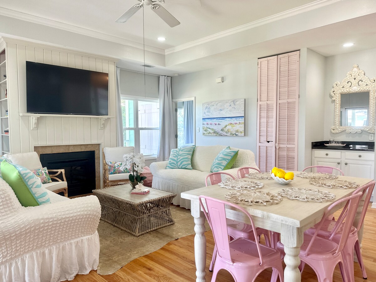 FlaminGO Tybee Cottage – це місце, де болотяні заходи сонця набувають кольору цукрової вати, а кожне перебування схоже на свято. Подорожуйте островом Тайбі на своєму БЕЗКОШТОВНОМУ ГОЛЬФ-КАРІ, насолоджуйтеся солодким чаєм на веранді з панорамним ВИДОМ НА БОЛОТА та відпочивайте у власному БУДКАМІ З ГІДРОМАСАЖНОЮ ВАННОЮ під мерехтливими вогниками. Це помешкання на острові Тайбі, яке має дві спальні з ліжками king-size, розташоване поруч із пляжем і оформлене в стилі «фламінго-шик», розраховане на 6 осіб і ідеально підходить для дівчачих вихідних, сімейних пляжних поїздок, романтичних подорожей та дівич-вечірок у стилі «Last Flamingle».