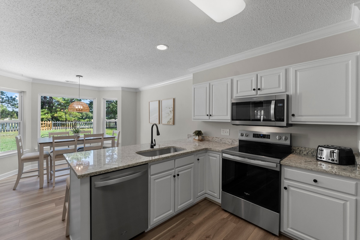 Ласкаво просимо до Southern Oaks Retreat! Наш нещодавно відремонтований будинок пропонує ігрову кімнату/кінотеатр (86-дюймовий телевізор, Nintendo, шафлборд, настільний футбол, дартс), простора вітальня (75-дюймовий телевізор), кабінет з масажним кріслом та головна спальня з ліжком king-size та окремою ванною кімнатою. На задньому дворі є поле для гольфу, диск-гольф, чаша для багаття, бістро-освітлення та ігри на газоні. YouTube TV, NFL Sunday Ticket, Netflix, Disney+, Hulu... за наш рахунок! Нові меблі та побутова техніка, обладнана кухня, пральня, а також гольф, басейн, теніс та піклбол всього за кілька кроків, з великою кількістю паркувальних місць.