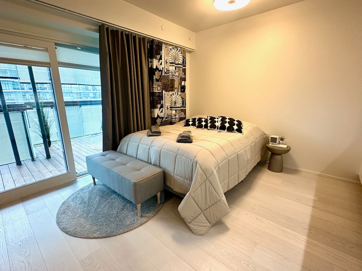 Відчуйте переваги життя в пентхаусі в центрі Гельсінкі. Насолоджуйтеся заскленим сонячним балконом – тепло навіть на початку весни, якщо світить сонце (+ точковий обігрівач). Розслабтеся у фінській сауні, а потім вийдіть на балкон із краєвидом, щоб насолодитися класичним контрастом тепла й холоду – скандинавським оздоровчим ритуалом, який освіжає тіло й розум. ⛸ Зима: безкоштовний каток за 50 м – ми маємо ковзани! ✔ Гнучкий час прибуття Тренажерний зал 🛏 2 BR 🅿 Безкоштовна парковка (EV) 📺 70" Disney+ ⌘12 хв до центру 👣 Підходить для прогулянок 🏪 Продуктовий магазин 60 м, 24/7 🍕 Хороші ресторани Парк