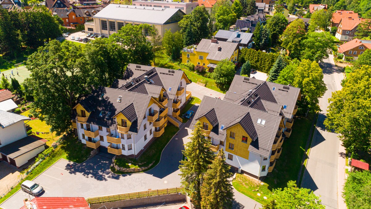 Комфортабельна вілласною площею 450 м2 з приватним садом. Sporthaus — ідеальне місце для людей, які активно займаються спортом, а також для сімей та груп друзів, які шукають місце для відпочинку. Близькість Карконоського національного парку та гірськолижних зон у Карпачі та Шклярській Порембі дає величезні можливості для активного відпочинку. Велика площа та приватний сад площею 5000 м2 забезпечують комфорт та приватність. Розташування поблизу маршрутів дозволяє здійснювати гірські прогулянки прямо з дому.