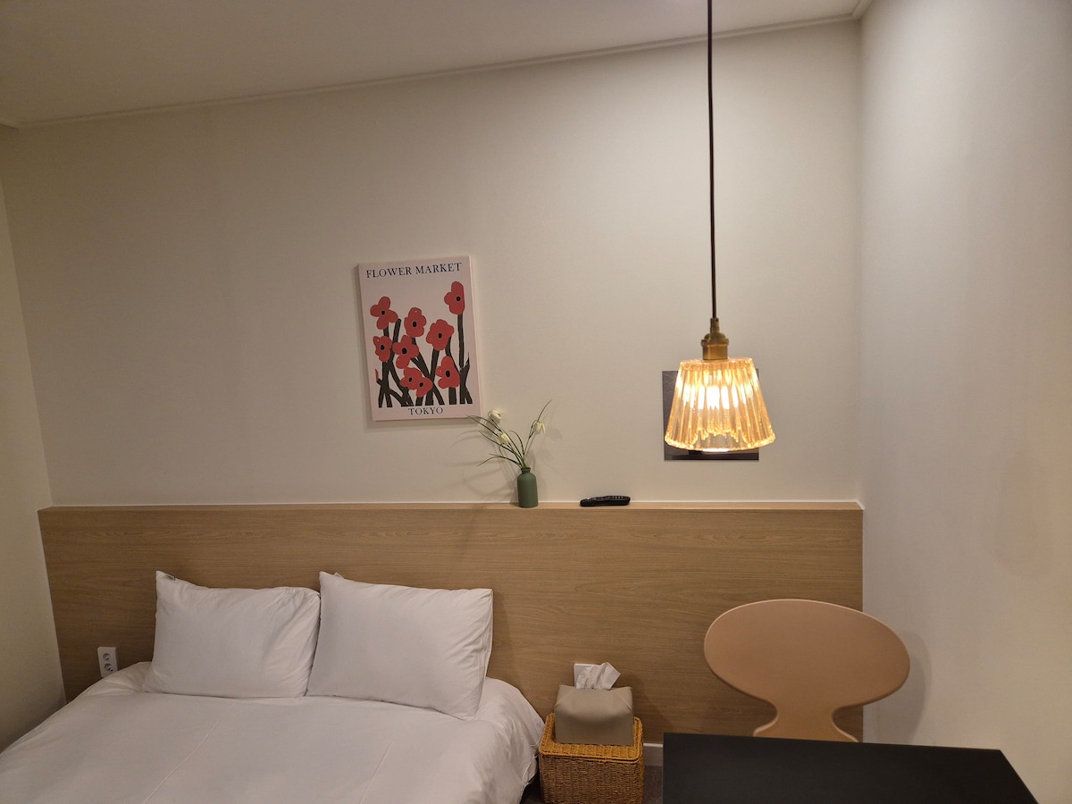 Це стильне помешкання розташоване неподалік від обов 'язкових місць. Невелика, але затишна і гарна кімната біля Starbucks і McDonald's у Чжунксан-дуні є невелика, але затишна і красива кімната. Ви можете дивитися Netflix і мати всі зручності, необхідні для комфортного перебування в будь-який час, D. По сусідству