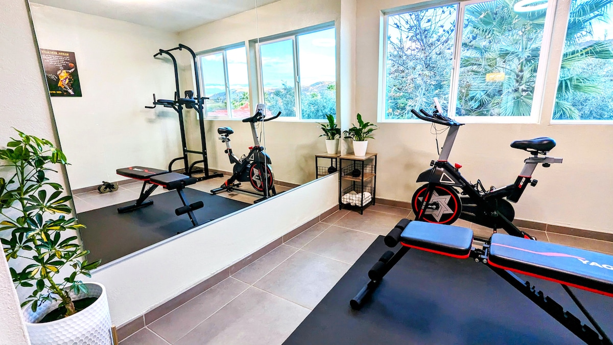 Відкрийте для себе розкіш у винній країні Мексики! Наше приголомшливе сучасне помешкання з 5 ліжками/4 ванними кімнатами пропонує ідеальне поєднання комфорту та розваг. Насолоджуйтеся швидким Wi-Fi, 8 смарт-телевізорами з Netflix і Disney+, тренажерним залом і динаміком Alexa. Розслабтеся в джакузі з підігрівом або весело проведіть час із аркадою, футболом і зеленню. Любителям активного відпочинку сподобаються газовий гриль і місце для багаття. Інтер 'єри з контролем клімату забезпечують цілорічний комфорт. Безпечний паркінг для 4 автомобілів. Зручне розташування поблизу ринків і зручностей.