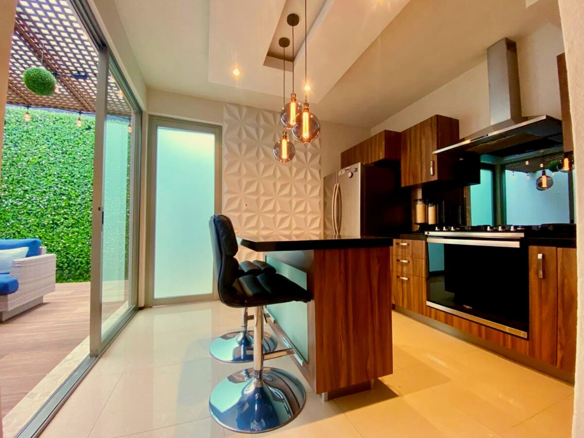 Насолоджуйтеся сучасною квартирою в ексклюзивній колонії Ломас Санта-Марія, Морелія. У ньому є дві кімнати (одне ліжко king-size і дві односпальні), три з половиною ванні кімнати, обладнана кухня з плитою, кавоваркою та мікрохвильовою піччю. Крім того, для додаткової зручності у вас буде приватний гараж, пральна та сушильна машини. Розташоване в тихому районі, всього в 15 хвилинах від історичного центру. Поруч із лікарнями, школами та торговими центрами. Ідеально підходить для сімей або груп, які шукають комфорт і стиль.