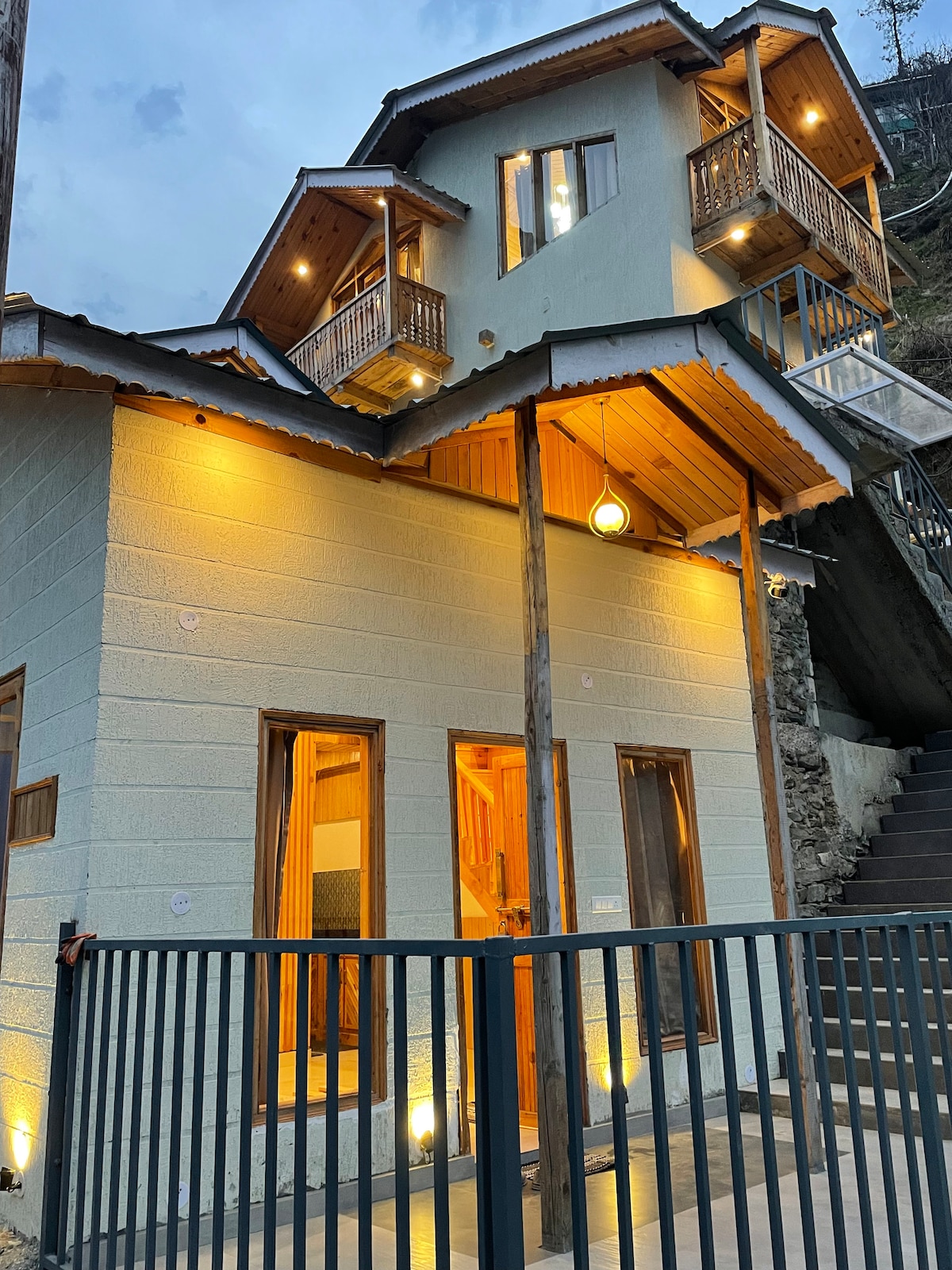 Я живу в Кремнієвій долині, штат Каліфорнія, і побудував це як другий будинок в Індії. Він розташований у передгір 'ї Гімалаїв на висоті 2000 метрів і призначений для любителів природи, які працюють у сфері технологій/онлайн. У будинку є все необхідне для комфорту, включаючи простору спальню, чудову кухню, ванну кімнату та дров 'яну сауну. На нижній веранді є кушетка та затишний куточок, а веранда нагорі біля спальні - чудове місце, де можна спостерігати за сходом сонця разом із ранковим чаєм.