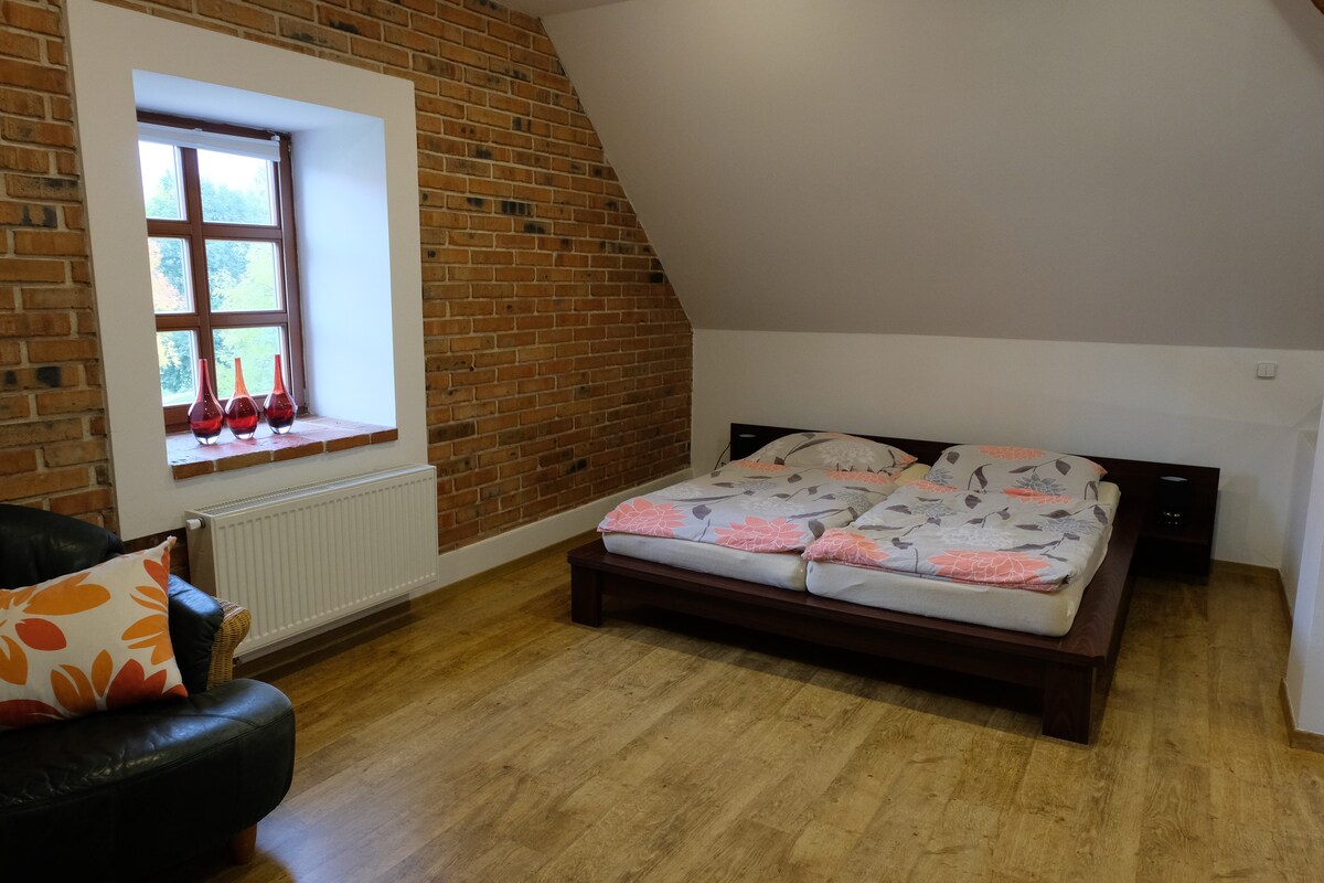 Наш гостьовий будинок U kostela - це чутливо відремонтований будинок 17-го століття в самому серці Чеської Канади. Тут є чотири окремі квартири, зона відпочинку на відкритому повітрі, великий сад, басейн, сад і вівці. Можна орендувати або весь котедж, або окремі квартири. Місткість всього гостьового будинку - 23 гостя. Ви знайдете спокій, приватність і красу старої сільської будівлі. Поруч знаходяться велосипедні доріжки, ставок для відпочинку в Осіці, замок Ландштайн, південний богемний вузькококаліс і міста Славоніце та Індржи