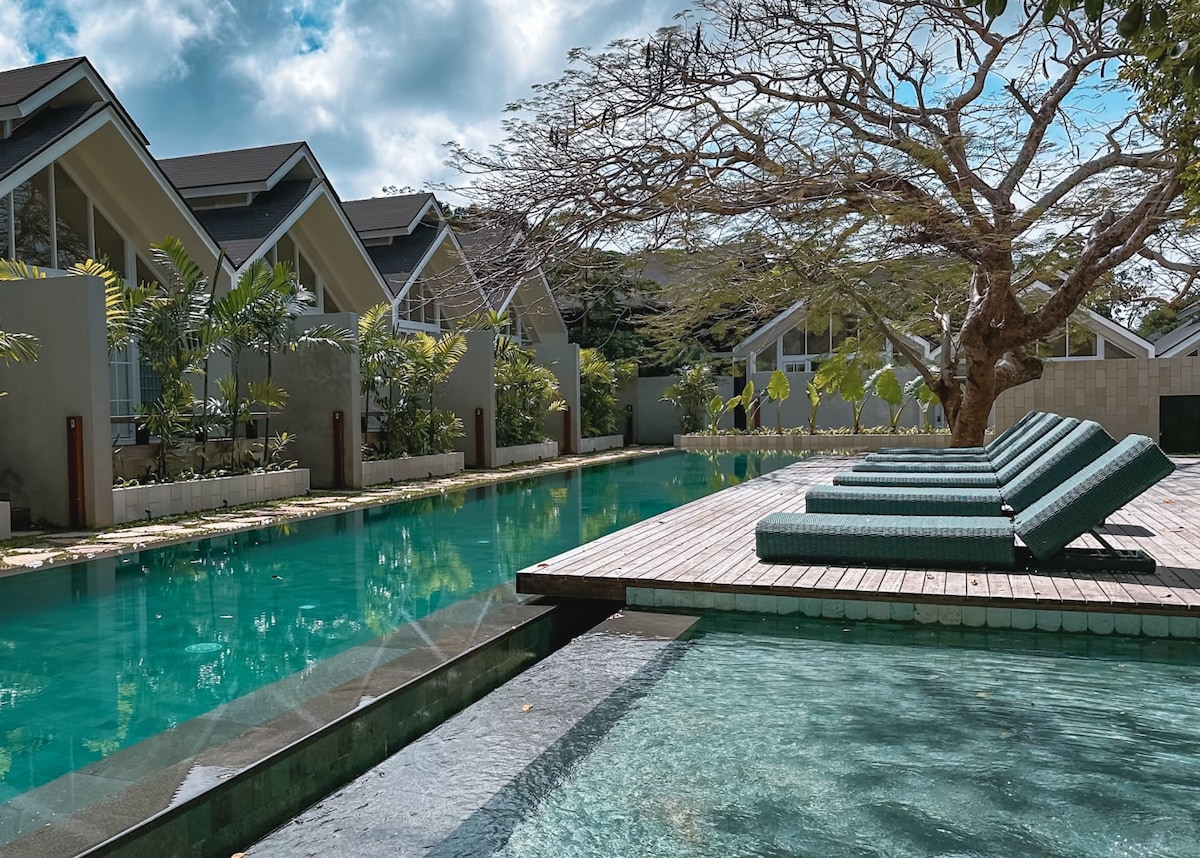 Насолоджуйтеся нашою унікальною індустріальною віллою з двома спальнями, створеною з урахуванням сучасної розкоші, комфорту та зручності. Кожен дюйм спроектований відповідно до найвищих стандартів і демонструє найкращі розкішні бренди. Насолоджуйтеся особистою сауною, доступною з 8:00 до 17:00, і джакузі в спальні, щоб зробити ваше перебування ідеальним. Пориньте в приватний басейн, смарт-телевізори, повністю обладнану кухню та мальовничу пишну зелень. Розташована в жвавому районі Семіньяка, ідеально підходить для відпочинку та насолоди сучасними зручностями~