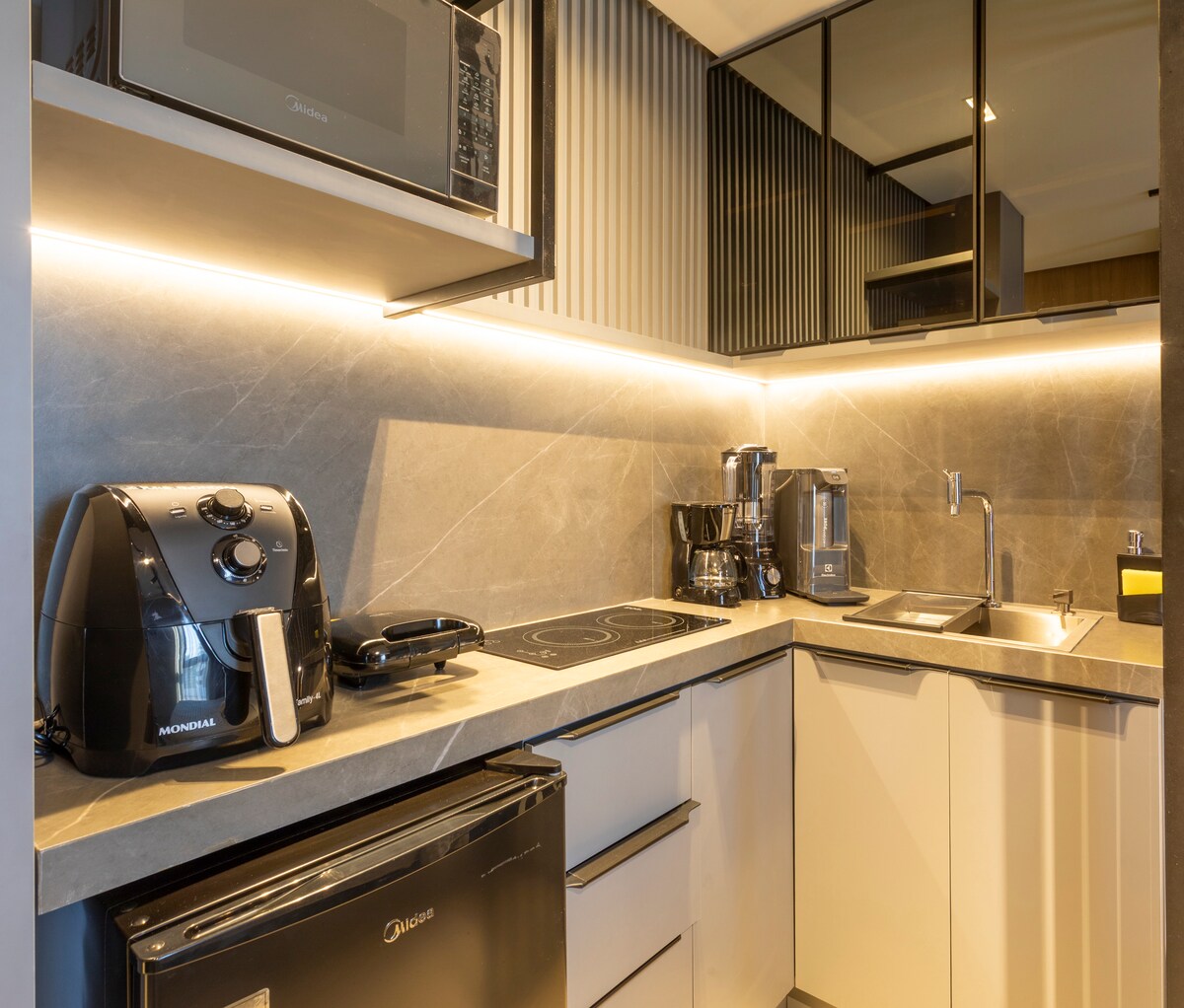 Квартира в елітному будинку на березі моря в Жардім-Океанії. Вміщує до 4 гостей, 1 люкс (ліжко розміру «queen-size») та 1 спальню (ліжко розміру «queen-size»), простору вітальню, кулінарну зону з електричним грилем, повністю обладнану кухню та зону для прання з пральною машиною. У будівлі є басейн на даху з видом на океан, тренажерний зал, дитяча ігрова кімната, коворкінг і спільна пральня. Ресторани, аптеки, ринки та торговий центр у межах 500 м. Ідеально підходить для комфорту та чудового розташування.
