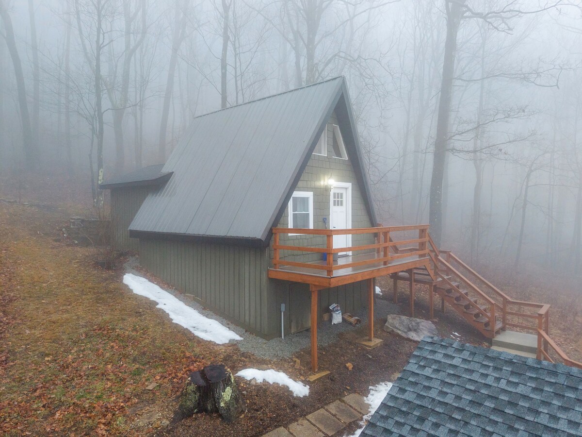 Унікальний зруб з 3 спальнями та 2 ванними кімнатами, схований у горах Лорел-Хайлендс, штат Пенсильванія. З цього помешкання відкривається чудовий вид на природу та пам 'ятки, особливо осінню та зимову листя. Ідеально підходить для сімейного відпочинку або відпочинку на лижах/кордонах. Зручно розташований за 3,5 милі від курорту 7Springs Resort і за 6,5 миль від курорту Hidden Valley. Сидить прямо в центрі пішохідних стежок Roaring Run Hillside, які чудово підходять для піших прогулянок і катання на гірських велосипедах. Instagram: @cabin_fever_paradise1983 #aframeaway