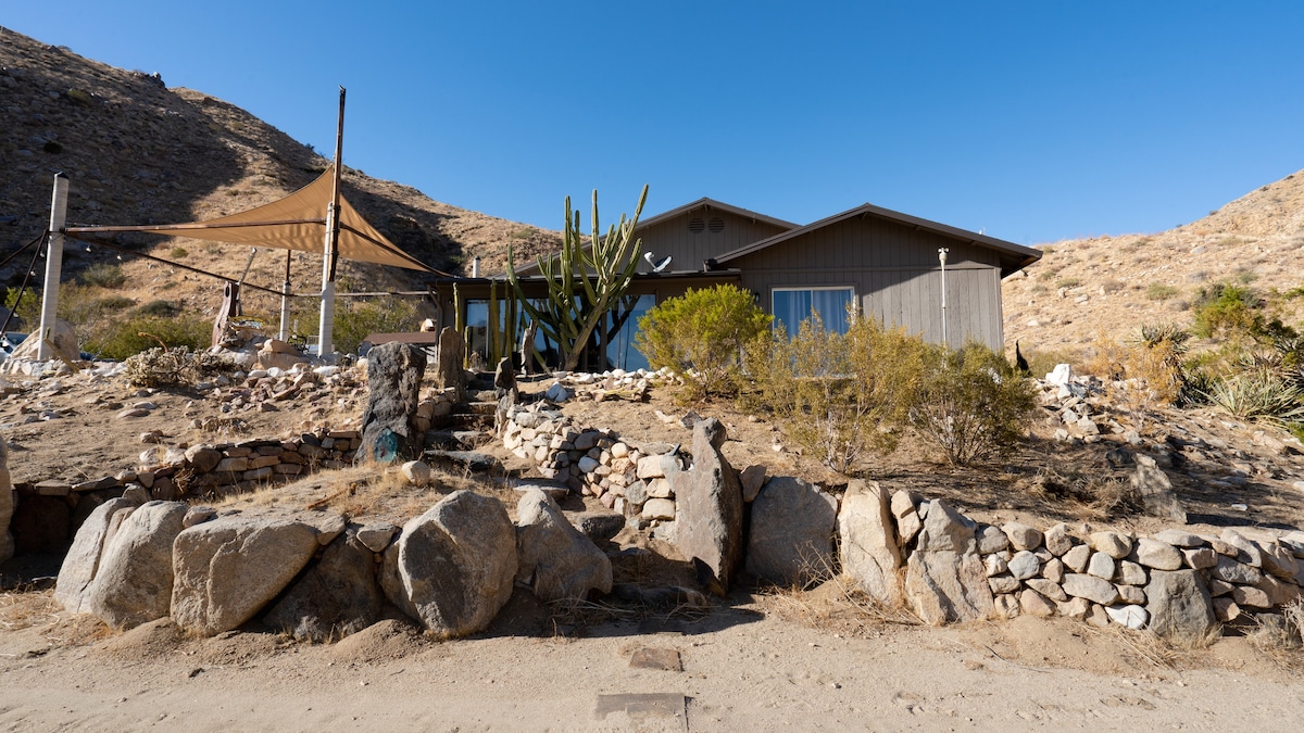 Our newly renovated beautiful modern chic desert cabin is the perfect place to relax and recoup. JT Cottage is a remodeled 1952 homesteader cottage with breath taking views all around. 5 mile drive to Joshua Tree Village and 9.6 mile drive to the National Park entrance, this stylish modern chic home has mature native plants and desert wild life right out the front door. Come here to immerse in the serene desert. It's ideal for solo trips, couples, and small group getaways!