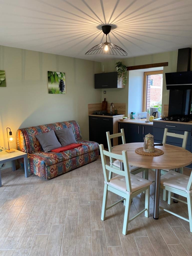 Заміський будинок на лоні природи: за кілька хвилин ходьби від нашої молочної ферми та курника, насолоджуйтеся заспокійливою обстановкою. Для 1–6 осіб у будинку є обладнана кухня, відкрита для їдальні та вітальні. Нагорі: 1 спальня (ліжко queen-size), 1 спальня (2 ліжка queen-size). Зовні: крита тераса з барбекю та майданчик для петанка для дружніх моментів. Ідеальне місце для відпочинку з сім’єю або друзями, щоб відкрити для себе чарівність сільської місцевості Нормандії.