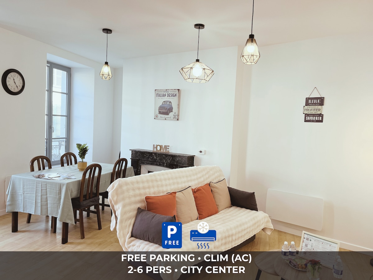 ❄️ Кондиціонер + приватна парковка включені — необмежена кількість виїздів 📍 Центр міста: 2 хвилини від Клемансо та бульвару Піреней ✨ Відремонтована квартира преміум-класу з 2 спальнями, дизайнерська та надзвичайно комфортабельна 🛏️ 2 затишні спальні + 🛋️ диван-ліжко високого комфорту 🍽️ Обладнана кухня та світла вітальня 🌿 Гарний приватний балкон ⚡ Швидкісний Wi-Fi ідеально підходить для віддаленої роботи Ідеально підходить для пар, сімей і професіоналів – до 6 осіб