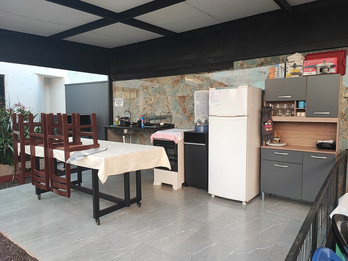 Kitnet mobiliada com garagem, localizado na avenida Londrina, próximo ao redondo do módulo 05. Possui 4 camas, sendo duas de casal e 2 de solteiro, fogão, geladeira, máquina de lavar roupas, chuveiro elétrico, cozinha... Em um dos quartos tem Ar condicionado e no outro ventilador.