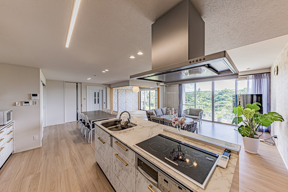 Новий будинок, побудований у вересні 2022 року, стоїть над скелями 340 градусів з видом на океан. З кожної кімнати площею близько 100 квадратних метрів відкривається вид на океан.Ваша вільна зона - це помешкання на 2-му поверсі та тераса для барбекю на даху на 3-му поверсі. У кожній кімнаті є телевізор 50 дюймів і більше, а у вітальні є проектор 4K і великий екран, тому ви можете дивитися фільми. На даху є тераса для барбекю, з 'єднана зовнішніми сходами, схід сонця, вид на схід сонця, схід сонця ввечері, нічний вид, зоряне небо та місяць.Декорації моря та природи будуть зцілені. Тераса на даху повністю обладнана туалетами, а також кухонний простір і зона вбиральня.Тут є 8 розеток, і ви можете готувати їжу за допомогою IH. У двох спальнях є два двоспальні ліжка, які можуть вмістити до 8 осіб. Диван у вітальні також має місце для односпального ліжка. Рекомендовано для пар, пар, сімей або подорожей на три покоління. Околиці дуже тихі, і ви можете чути шум комах, звук сов і шум хвиль, якщо слухати його вночі. Підводна дорога тощо знаходиться в 10 хвилинах їзди на автомобілі, а також рекомендується як база для морських видів спорту.