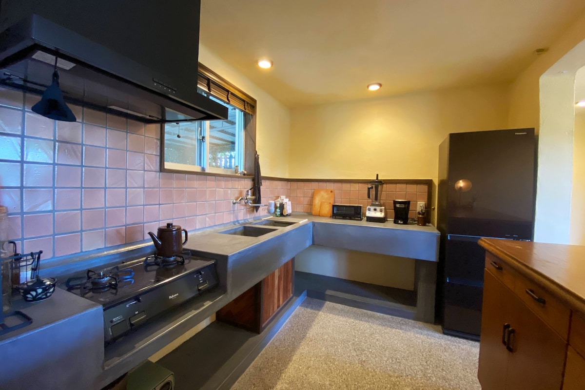 «Будинок Chion 's House» - це приватне помешкання, обмежене однією групою на день у селі Онна, Окінава.Меблі з барвистою мозаїчною плиткою та земляними мішками, які використовують тепло дерева.Насолоджуйтеся спокійним відпочинком у таємничому помешканні з вигнутою структурою. У саду вирощують сезони квітів і трав.Ви можете збирати, прикрасити та насолоджуватися або готувати їжу на міні-кухні. На головному екрані є домашній кінотеатр та аудіозабір, а на великому екрані можна підключити власні DVD/Bluray, iPhone, iPad, Switch тощо, щоб насолоджуватися фільмами, іграми, потоковою живою музикою тощо.Ми також здаємо в оренду музичні інструменти. Надається кавоварка та посуд для чаю.Ви також можете насолоджуватися трав 'яним чаєм з трав' яними травами в саду.Приємного відпочинку.