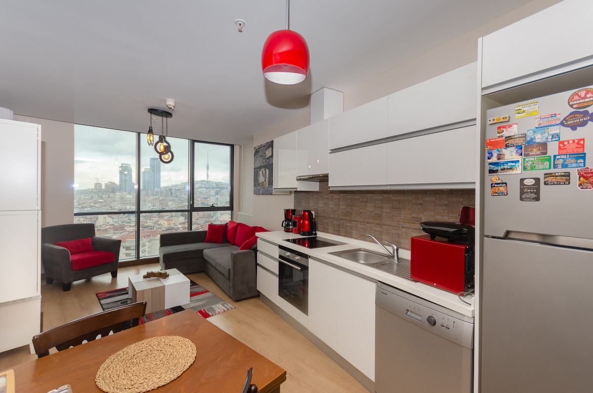 Повністю мебльована квартира в перших трійнятих вежах Стамбула - Dumankaya Ikon Residence. Насолоджуйтеся краєвидом на нашу квартиру з 2 спальнями. Об 'єкт розташований в Аташехірі недалеко від центру міста в азійській частині Стамбула .