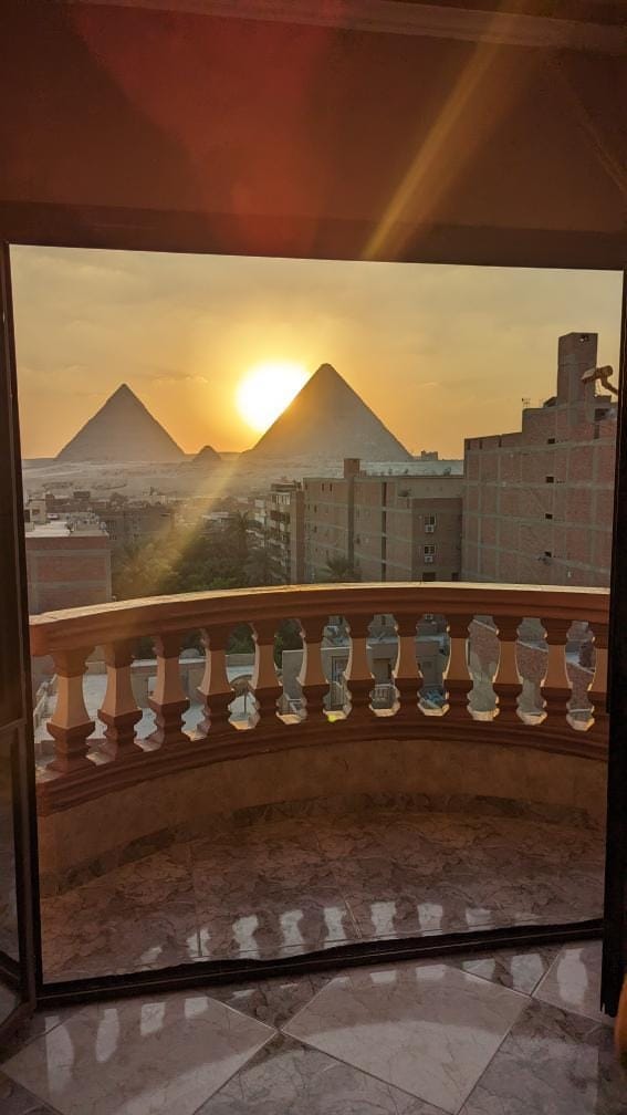 Приголомшливий краєвид на піраміди Ця квартира розташована всього в 10 хвилинах ходьби від вхідних воріт до Сфінкса та пірамід, з балкона відкривається вид на піраміди. Квартира розташована в тихому місці, поруч із багатьма ресторанами, магазинами, фруктовими магазинами, торговим центром (місцевим та туристичним), міні-маркетами та аптеками. Квартира обладнана кондиціонером, безлімітним швидким Інтернетом, повним набором аксесуарів, чистими простирадлами, свіжими рушниками та тихою атмосферою. Це, мабуть, найкраще місце, щоб насолодитися краєвидом на піраміди