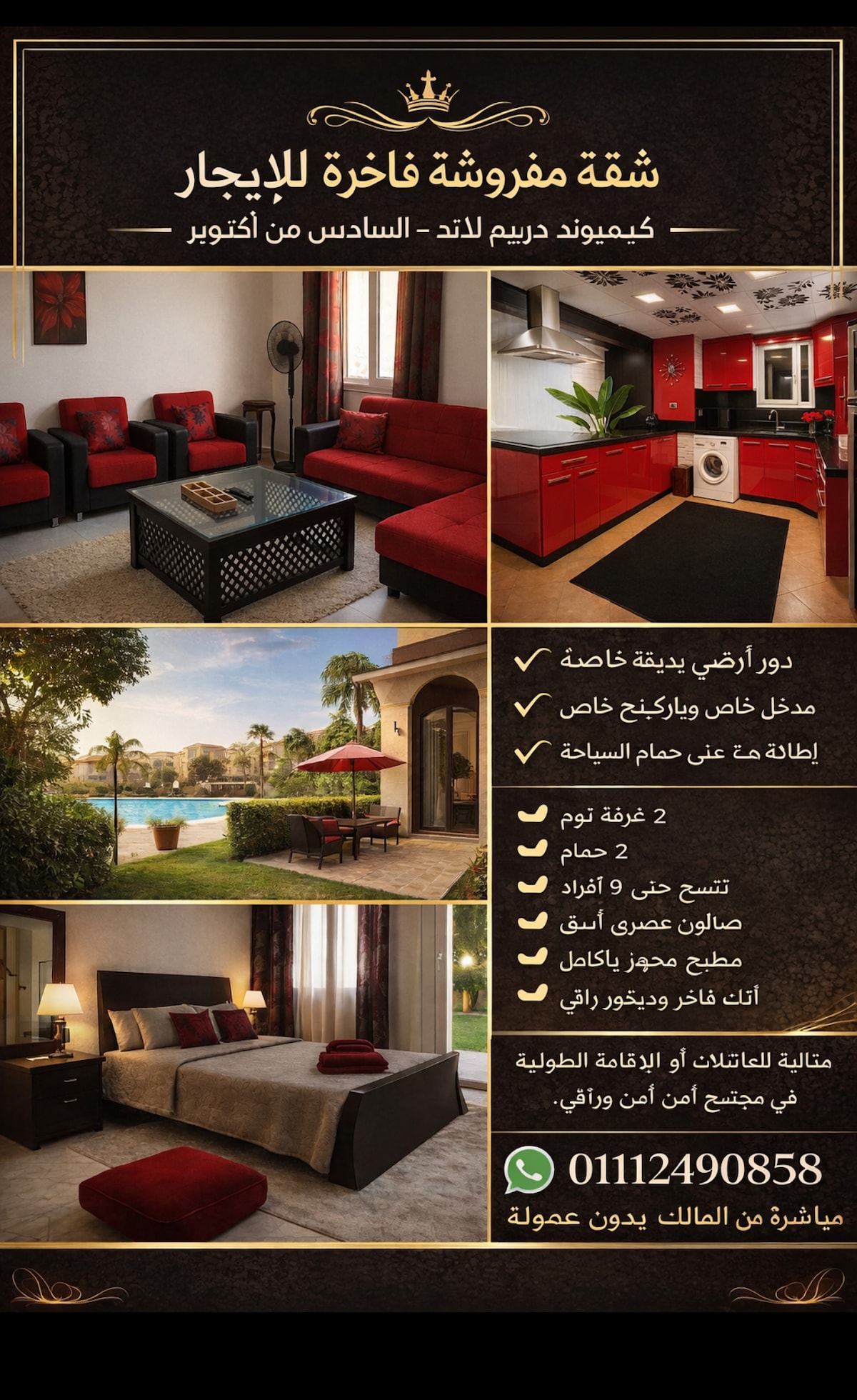 Enjoy the resort luxury living where lush greenery walks has no end while creating a memorable relaxation and enjoyable moments in the 3 high end pools including all ages and adults only pools, along with being close to all the city attractions points where famous shopping malls, it’s 25 minutes away from the Grand Egyptian Museum by Ubers! Our apartment is located in the heart of one of the most well known luxurious residential compounds where you can roam or have a lovely walk anytime safely!