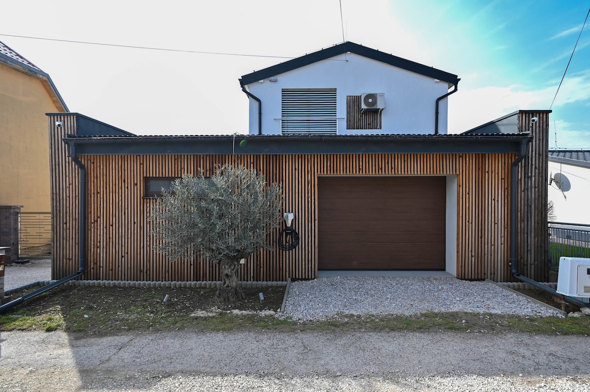 Мій будинок розташований в містечку на невеликій відстані від Братислави (20 хвилин). Район дуже приватний, з усіма новобудовими будинками навколо, дуже близько до виноградників і лісів неподалік. Він підходить для 6 осіб. Зона внизу складається з однієї великої відкритої вітальні з великим диваном, телевізором і кухнею з усім обладнанням, посудомийною машиною, холодильником з морозильною камерою,духовкою,мікрохвильовою піччю та всіма необхідними електричними приладами. Нагорі є 3 великі спальні. У кожній спальні є смарт-телевізор. Одна ванна кімната з ванною,душем,туалетом та пральною машиною. Будинок ідеально підходить для великих сімей,груп людей,пар або одиноких мандрівників для відпочинку або ділової поїздки, добре підходить для перебування на кілька днів, тривале перебування. Зовні є великий сад з невеликим басейном,велике патіо з грилем для барбекю,прекрасна зона відпочинку на літні дні.