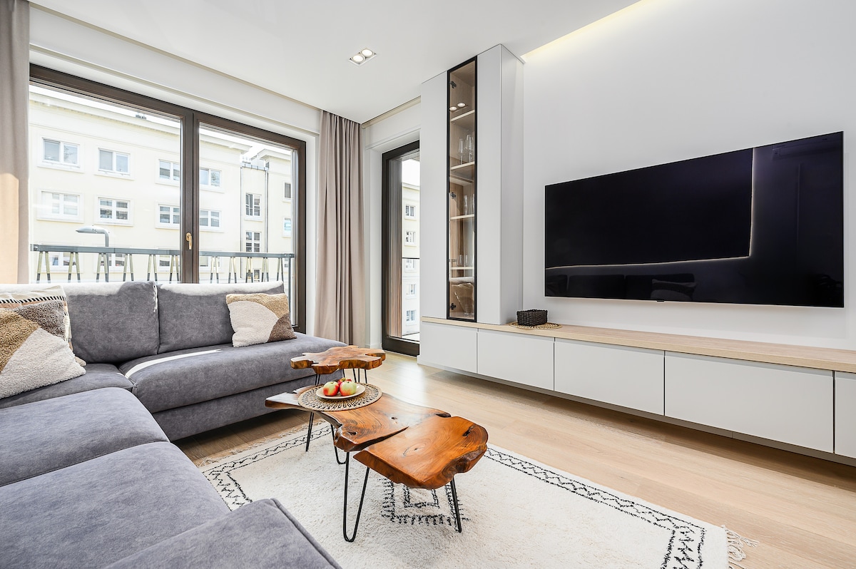 AmSuites – відкрийте для себе унікальне поєднання розкоші, комфорту та дизайну в цій стильній міській квартирі, яка ідеально підходить для романтичного відпочинку, віддаленої роботи або відпочинку в місті. ✨ Переваги: - 🧖♂️ Цілорічне джакузі з підігрівом на приватній терасі на даху площею 55кв. м. - 📺 55-дюймовий смарт-телевізор - ❄️ Кондиціонер, високошвидкісний Wi-Fi та повністю обладнана кухня. - 🚗 Безпечна парковка в гаражі включена. Відпочиньте під зірками, розслабтеся в спокійному комфорті й зробіть своє перебування у Варшаві незабутнім.
