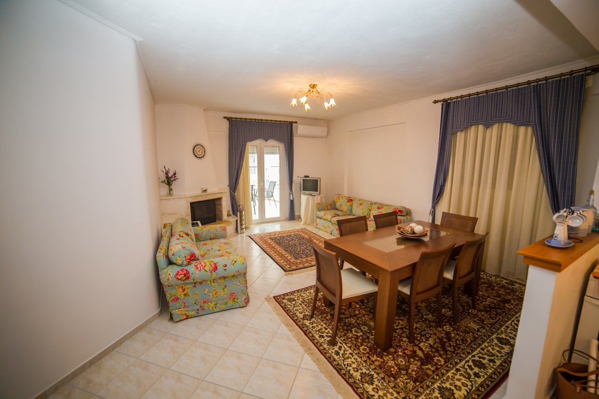 Квартира розташована в центрі Калампаки, в одному кварталі від Ратушної площі та площі Дімула, в пішій доступності від усіх місцевих ресторанів,барів і магазинів. Залізнична, автобусна станція та таксі знаходяться в декількох хвилинах ходьби(5-10 хвилин). Квартира ідеально підходить для сімей, а також для груп друзів. Ви можете насолодитися видом на Метеору та Іліас з її балконів. У квартирі є безкоштовний WI-FI. На сусідніх вулицях є безкоштовне місце для паркування.