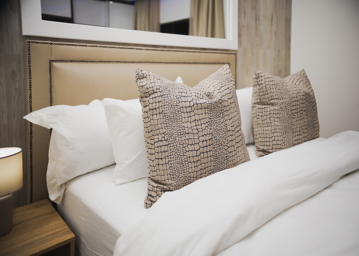 Номери ідеально підходять для 4 осіб, мають подовжені ліжка розміру King size та окремі ванні кімнати. Міні-кухня має 2 конфорки, а в помешканні є обідня зона, вітальня зі смарт-телевізором із Netflix, DStv та YouTube, а також балкон. До послуг гостей Wi-Fi.