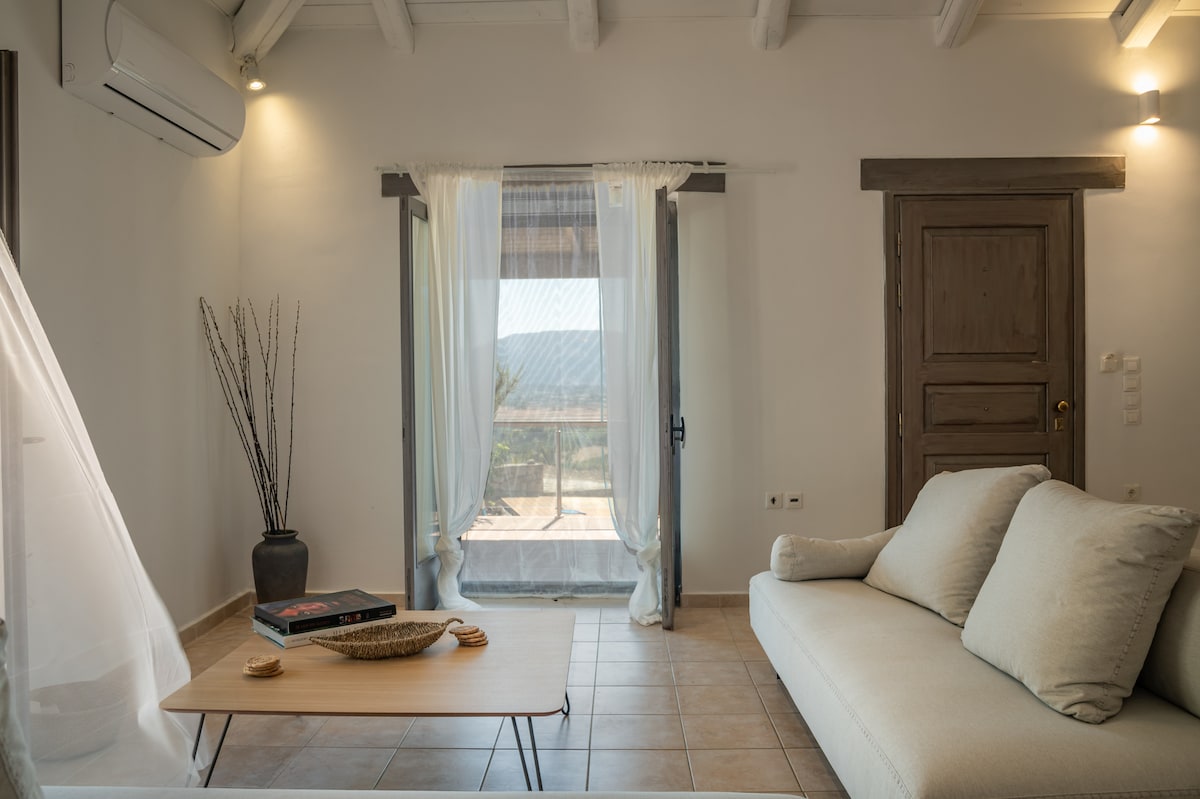 Euphoria Hill Villa stands proudly atop the picturesque hills of Zakynthos, nestled in the tranquil Neratzoules area, in Argasi region. The villa's elevated position, surrounded by ancient olive trees, not only provides a unique seclusion but also unveils breathtaking panoramic views of the valley and the shimmering sea from its top floor. The generous expanse of land surrounding the villa offers ample space for relaxation and leisure, ensuring utmost privacy and exclusivity.