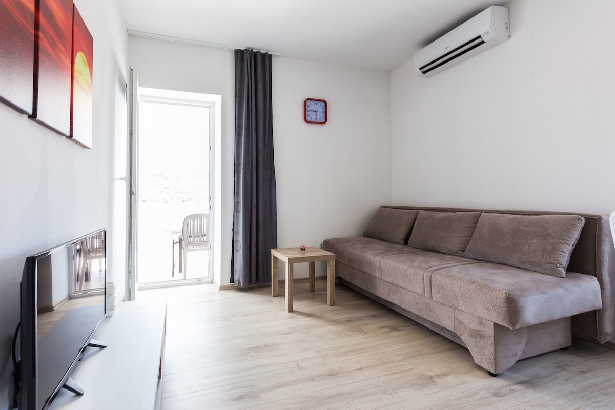Apartman studio katalea sadrži prostor koji je idealan za parove ili parove s dijetetom.Apartman je potkrovlje koji ima svoje čari. Ispred kuće se nalazi vrt sa stolom. U vrtu se nalaz i BBQ. Smiješten je na lokaciji koja je odlična za nočne izlaske koji su udaljeni svega 10-15 min hoda. Plaža je udaljena 5 min od apartmana. U ovom apartmanu auto vam nije potrebno. Autobusni kolodvor je udaljen 3-5 min.
