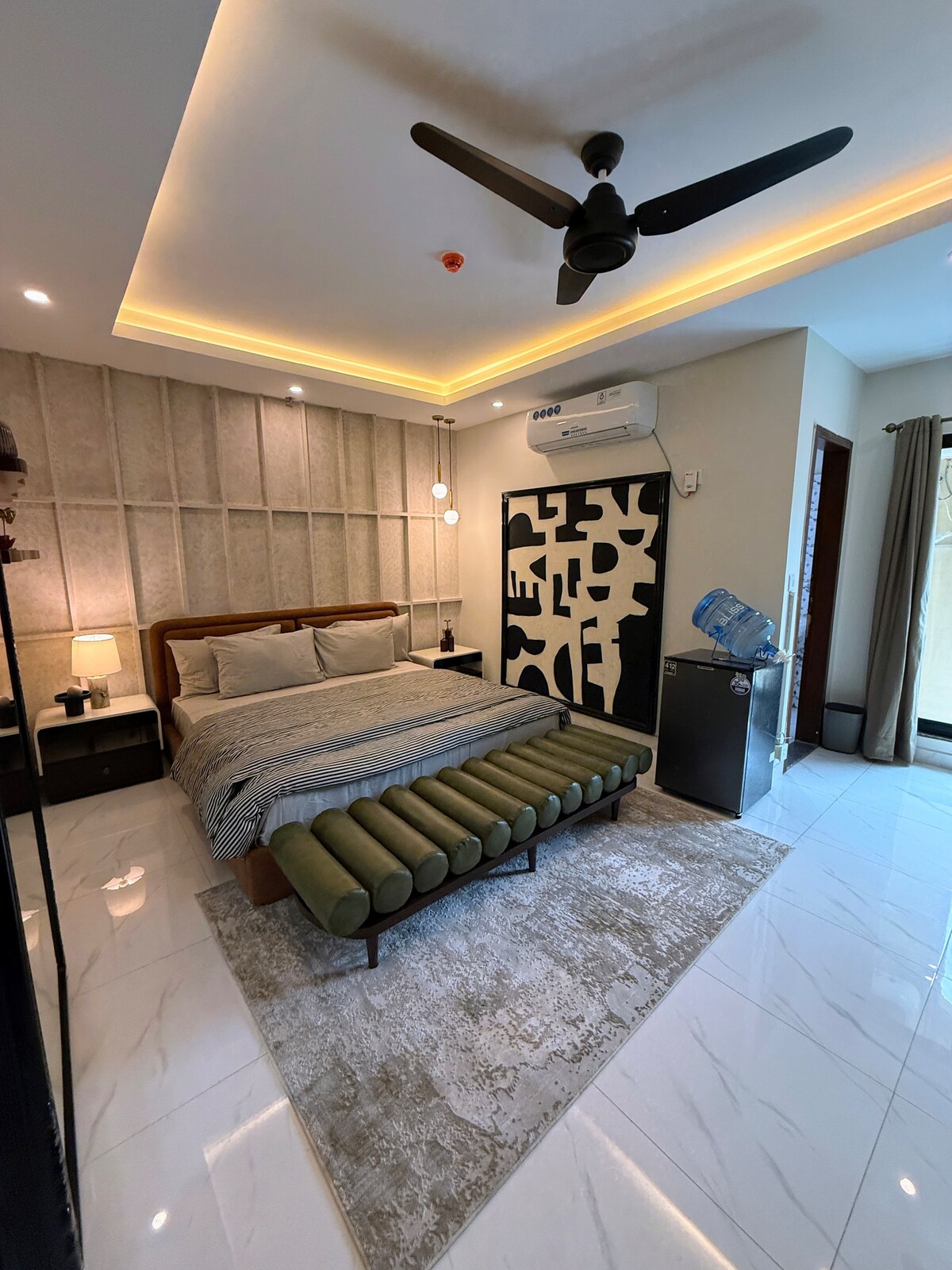 Ласкаво просимо до наших стильних апартаментів з двома спальнями в DHA 5, Ісламабад. Насолоджуйтеся зручністю швидкої поїздки на роботу й відпочинку в помешканні з чудовим декором і повністю обладнаним домашнім кінотеатром. Цей затишний відпочинок ідеально підходить для мандрівників, які шукають комфорт і розваги, пропонує сучасні зручності в чудовому місці. Це повністю окрема частина з власним окремим входом і паркуванням, зручна для сімей, тому дуже безпечна і спокійна. Вечірки та гучна музика заборонені. Неодружені пари не допускаються.